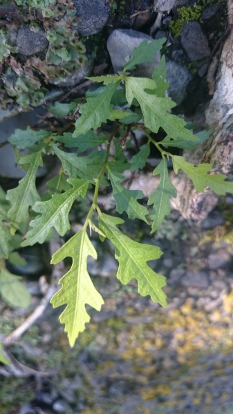 - 單葉互生,革質、薄革質或厚紙質,3 出脈,兩面粗糙,卵形、橢圓形或披針形,全緣,尖頭,楔腳,基部微歪斜,少數具耳狀突出。葉型多變,幼株葉片呈羽裂狀。