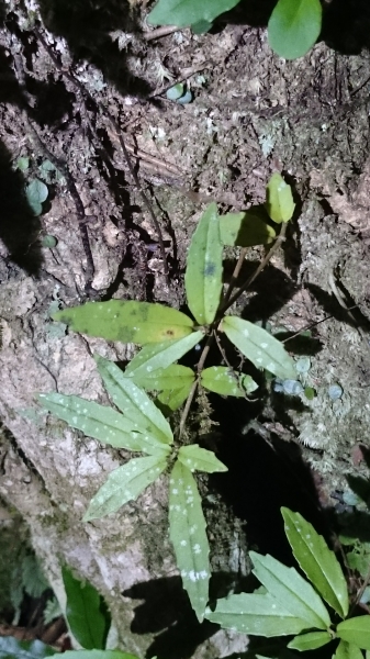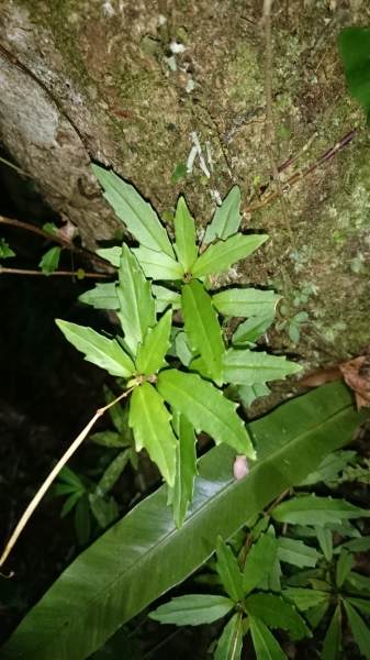 - 單葉,輪生、對生或 4~7 枚假輪生,具短柄,紫紅綠色,葉片長橢圓狀披針形,長 3~6 公分,寬 0.8~1.5 公分,基部楔形或鈍形,先端鈍形或尖形,稍革質,光滑無毛,鈍狀疏鋸齒緣,主脈背面凸起
