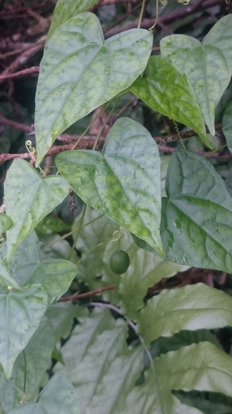 - 葉膜質至紙質,近乎長三角形,偶而 3~5 淺裂,葉長 5~10 公分,柄與葉近乎垂直,長約 4~6 公分,包括葉頂的 2 條主脈,共有 5 條凹陷主脈