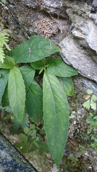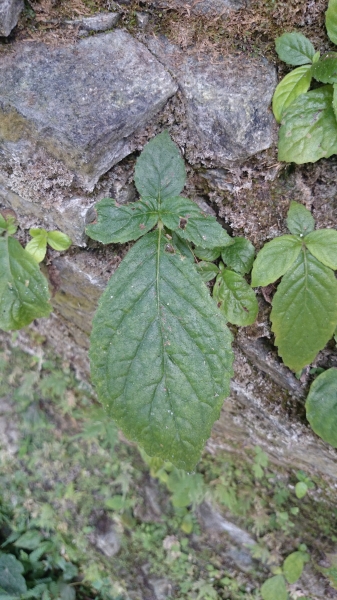 - 葉為紙質,對生,上部葉偶而成互生,橢圓形,長可達約27公分,葉原有鋸齒且呈浪狀,兩面均被有細柔毛