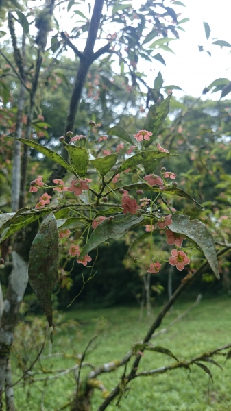- 聚繖花序著生小枝上部葉腋,花5-9朵疏生(故名疏花衛矛)。花淡紅色或黃白色,花瓣4或5片,近圓形。雄蕊4-5枚不具花斯,著生花盤周圍