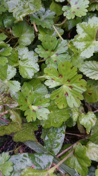 - 單葉對生,寬圓形或圓腎形,深三裂或五裂,各裂片再淺裂。葉柄長約1-5cm,莖和葉柄均明顯被毛