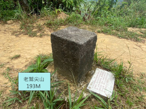 老鷲尖山又名老鷹尖,海拔193M,地上有北市三角點基石一顆,山頂平台不大,展望不錯。(資料來源:鳥毛遊記)