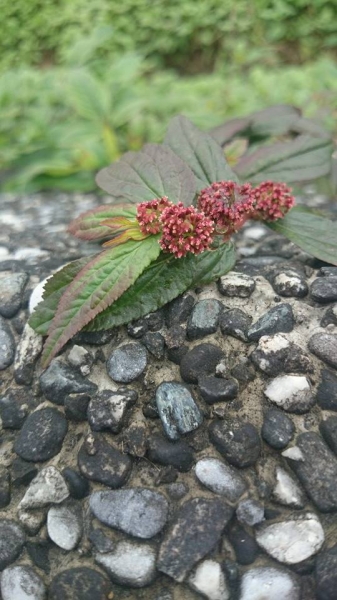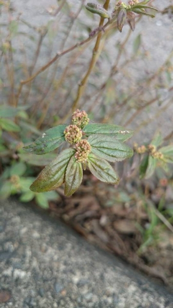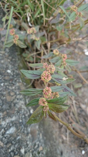 - 花序為杯狀大戟花序,密集呈頭狀,著生葉腋,花密而小,綠色或紫紅色