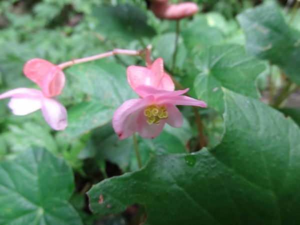 - 粉紅色至紅色,雌雄同株異花,呈聚繖花序排列
