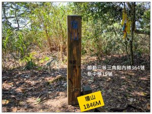 瓊山,海拔1846公尺,亦位於南投縣信義鄉望美村,立有聯勤三等三角點內補364號(另一面刻有新中橫19號),山頂腹地廣,但為樹林所圍繞,無展望。(資料來源:101)