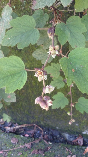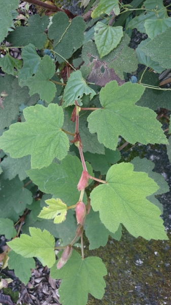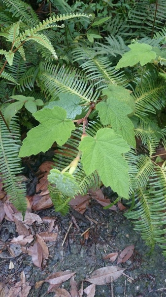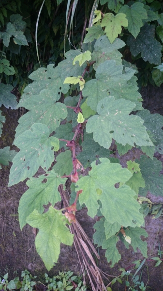 - 葉外形上呈闊卵形至圓形,先端銳尖至鈍,基部心形,糙紙質,較深的 5 裂,有不規則細鋸齒,主脈 5 條,表面暗綠色或帶褐色色澤,背面淡褐色而密生毛茸;托葉卵形或長橢圓形,先端呈羽裂狀。