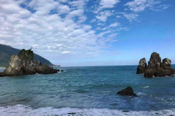 東澳灣南方的一處小漁港,過去因鴿子群聚鄰近的粉鳥嶺而以台語喚名「粉鳥林」。順著樓梯進入漁港一側獨立隱蔽的小灣澳,海中突起的嶙峋奇岩,對比漸層柔美的蘇打藍浪花拍打海岸,瀰漫浪漫情調,也成為知名的秘境打卡熱點!