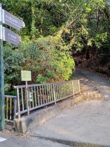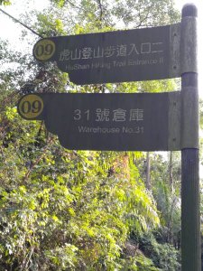 虎山步道之5,省府大樓旁步道入口進,沿著白線中間的產業道路前行,繞到至高點返回,行至步道入口二左轉續行,到31倉庫旁的步道入口三出,遇環山路右轉,續行返回出發點。