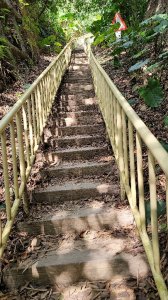 - 松柏嶺登廟步道末段接受天宮的路段尚在施工中,坑內坑森林步道河床部分雜草皆已清除,所有生態工程設施皆清楚可見,苳柏步道原先雜草叢生的部分皆已清除乾淨,目前步道全段皆寬闊好走,二八彎古道全段路跡清晰,接近山頂處有連續拉繩陡上地形,全段多為瘦稜危崖地形,需慎入,埔中素密達步道全段路跡清晰,前段沿乾溪溝緩坡上溯,沿途皆有布條,中段開始連續拉繩陡上,經2段鐵梯後接上後段瘦稜路徑,整體危險性沒二八彎古道那麼高