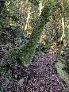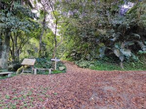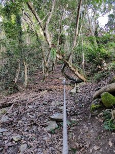 - 千年欅木前甚陡,很多拉繩路段,沙土落葉要小心踩,易滑溜,若溜下,應二、三十公尺才止得住。欅木後是比較好走路段,坡度緩了,人造杉木就多了,大致就走在杉林中。山頂為森林三角點,無展望。登山口處可停三、四輛車。