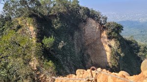 - 火炎山山徑主線步道線路況良好,往慈濟茶園方向北稜山徑全段路況乾淨維護良好,過盪鞦韆處與三義垃圾掩埋場岔路前後之間有多段落差較大的極陡上下坡,全部皆有完善的架繩和木梯,基本安全好爬,過三義垃圾掩埋場岔路後有幾段山徑緊鄰西側崖邊行走,需要小心通過,快到中點休息區時路徑變得更寬大平緩易行,一路康莊大道至130縣道,去程依藍天隊指標和一些登山團體布條指示走,經過中廣發射站,回程改通過火炎山營區前柏油路