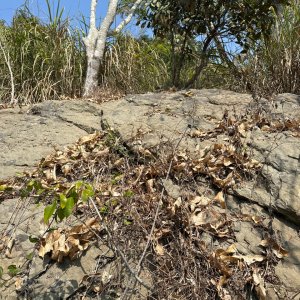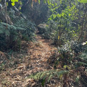 - 循著損壞的產業道路一路上升,中間進入原始土石路,有個陡坡要拉繩。最後又接到廢棄產業道路,要注意叉路口位置,因為回程可能沒注意就繼續走產業道路下去。可以下載gpx檔參考。第一顆基石沒找到。