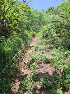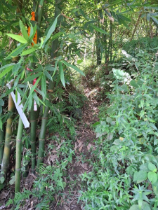 ■約在0.5K遇2位山友,其表示因前方草叢有蜂窩且遭螫而撤退,經確認非虎頭蜂後決定續行,採取策略是不打草驚蜂,並對飛鳴聲保持警戒。靜音模式順行至約1.2K左右,駐足幾秒突感到螫咬,立即快跑離開,還好蜂毒不強並無大礙。