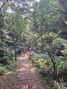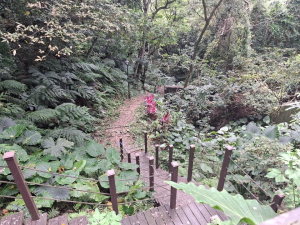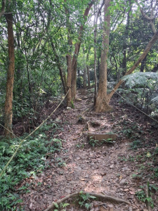- ■老公崎步道位居林口台地崖邊下切之谷地叢林中,這類地形的步道如彰化八卦台地邊之十八彎古道、松柏嶺之坑內坑步道及登廟步道。
