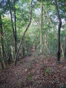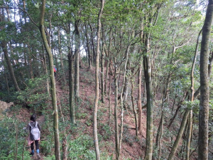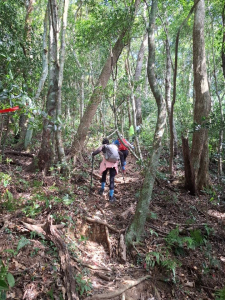 ■進入水田林道約200m處,有綁布條,陡上可先登蓮包山(不取);續行至林道850m處,過水泥橋,達外鳥嘴山第一登山口,路線緩陡,林相優美,初秋登山體感舒適。