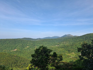 五指山星城咖啡→梅花山→梅花山西峰→梅花山北峰→萬溪產業道路→登峰圳出水口→頂山溪山(頂山南峰)→瑪蕃山→頂山西南峰→頂山→北頂山→北五指山→高頂山→荷蘭古道→坪頂古圳步道→溪和宮