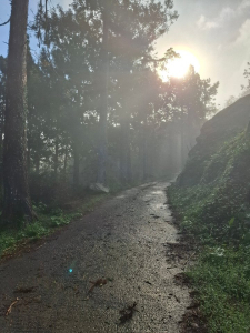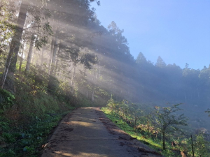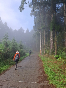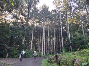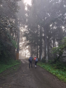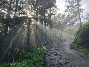 - ■大湳林道杉木林景緻優美,早晨霧氣濛濛,待陽光施展熱力後,雲霧逐漸散退,林間透出耶穌光,由制高點向遠處看盡是雲海與孤島(其實是山頭),請參閱gpx所附照片。