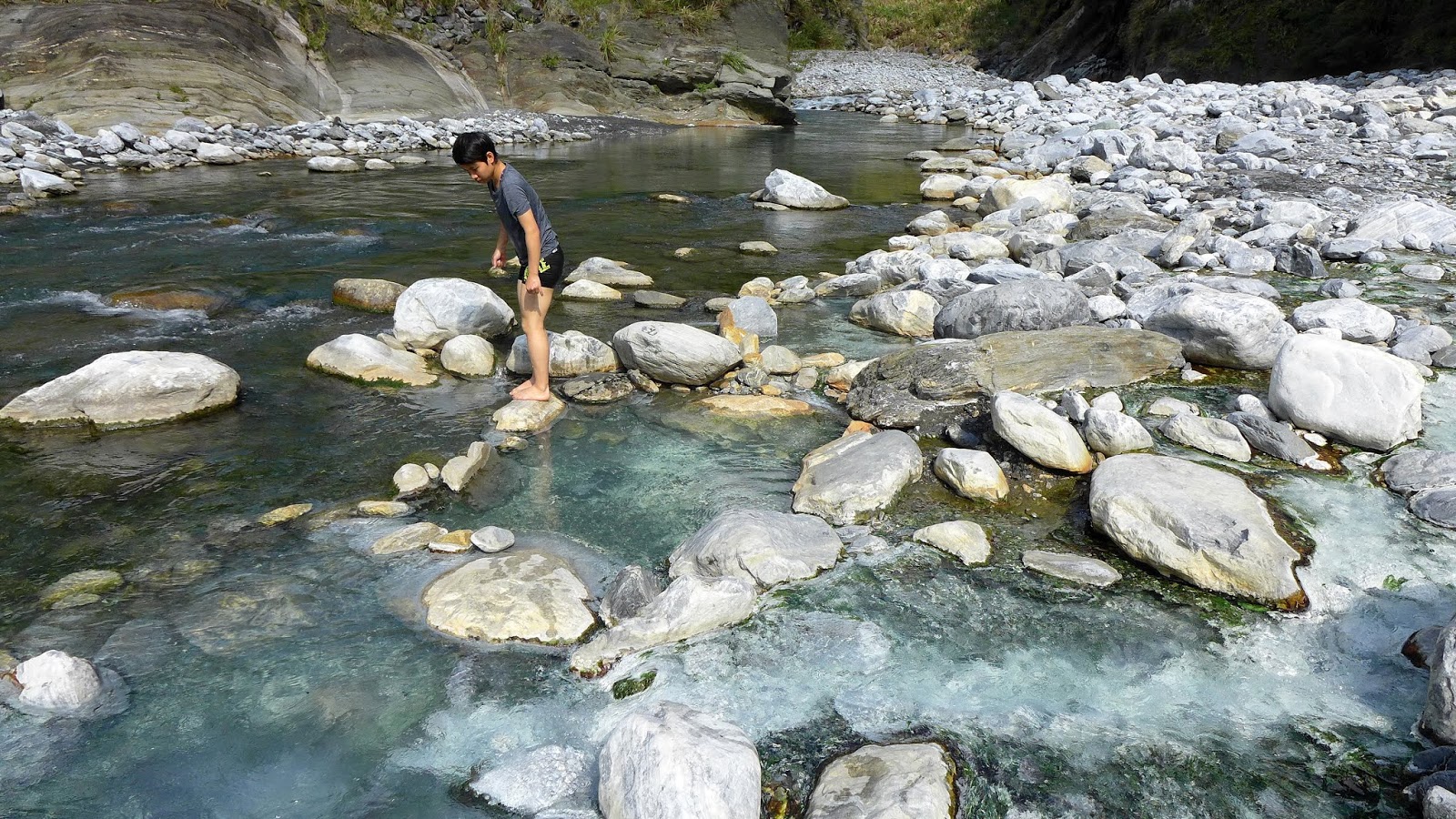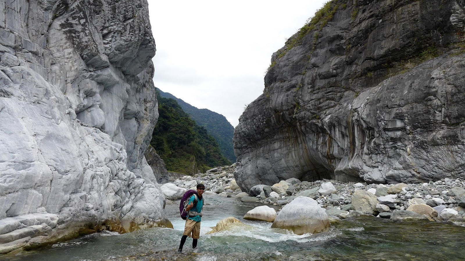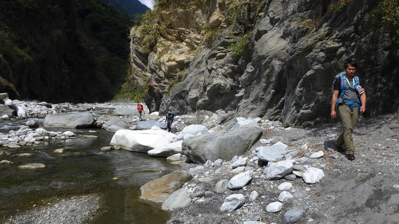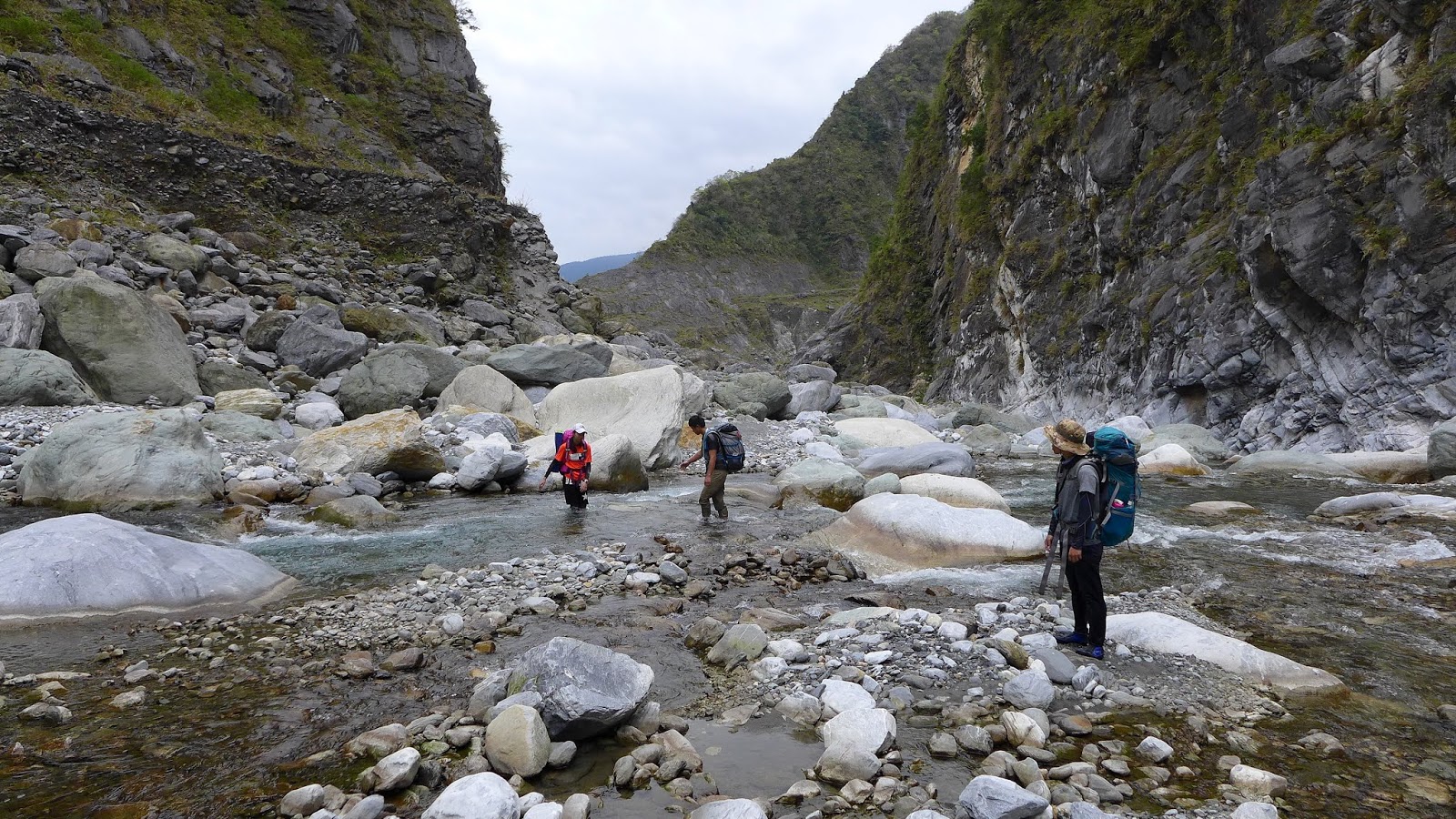 峽谷這一段流速較快,過溪點要挑,有一處要從水流中間一處大石頭下水渡溪通過,這邊要當心,窄谷這段同樣超適合拍照,通過窄谷後,河谷向右彎後再次轉回寬河床樣貌。