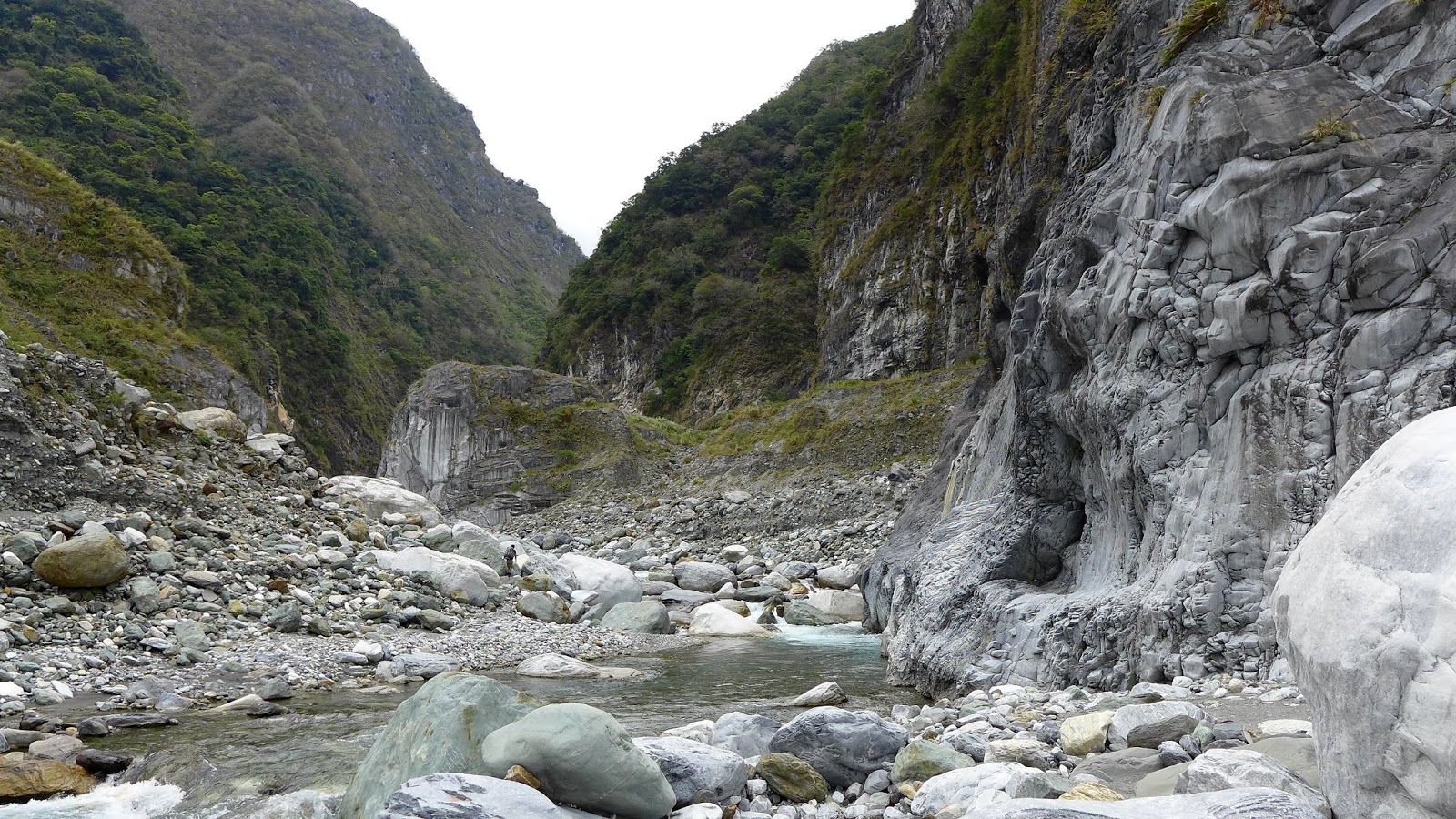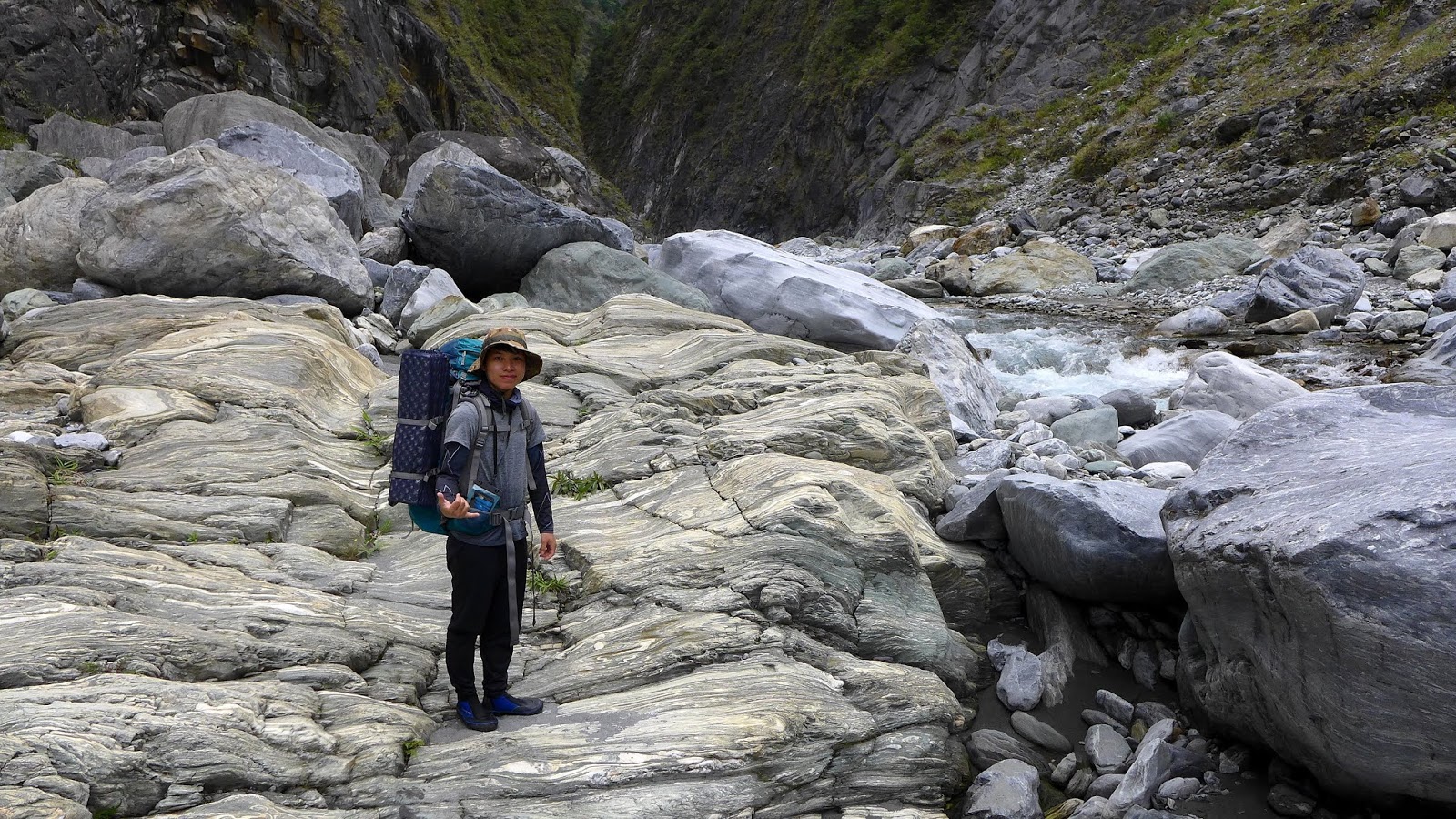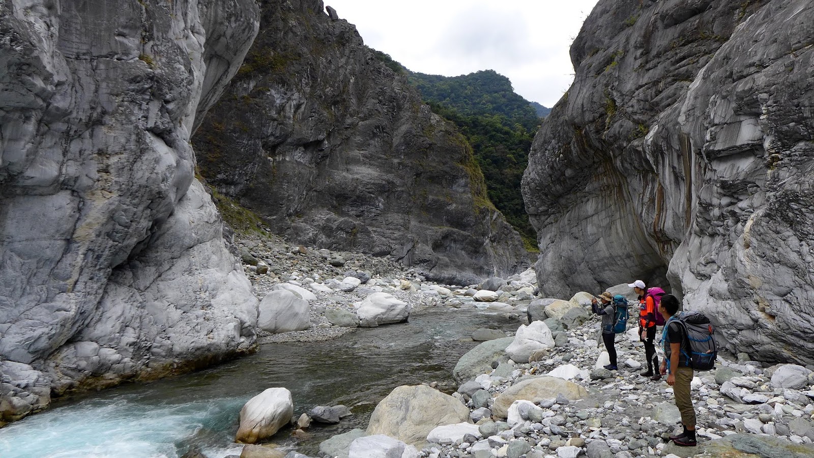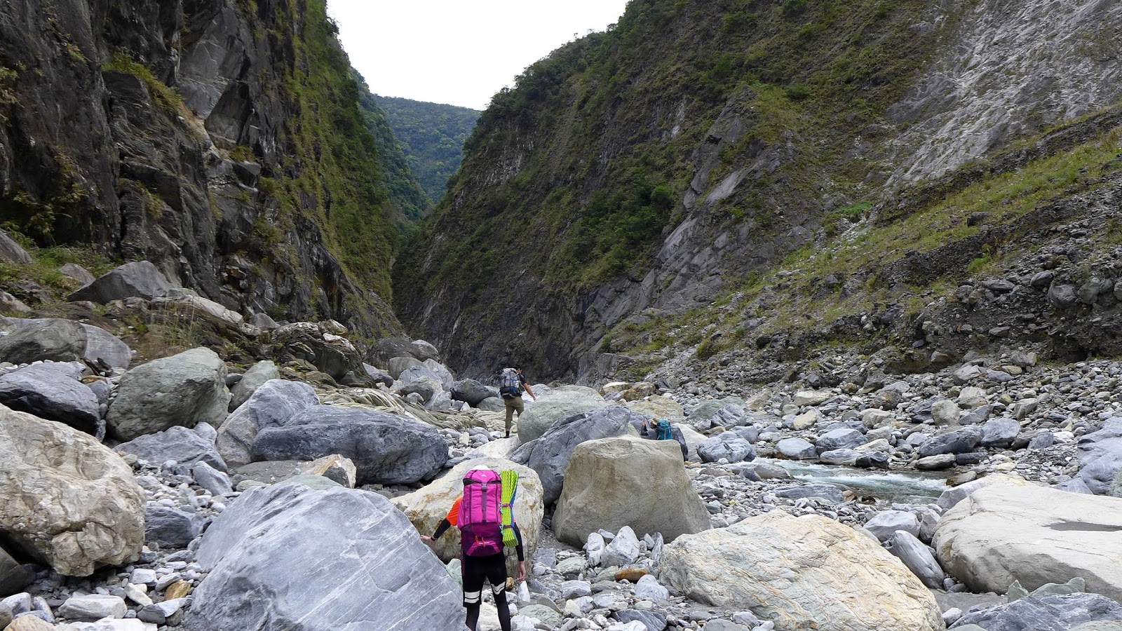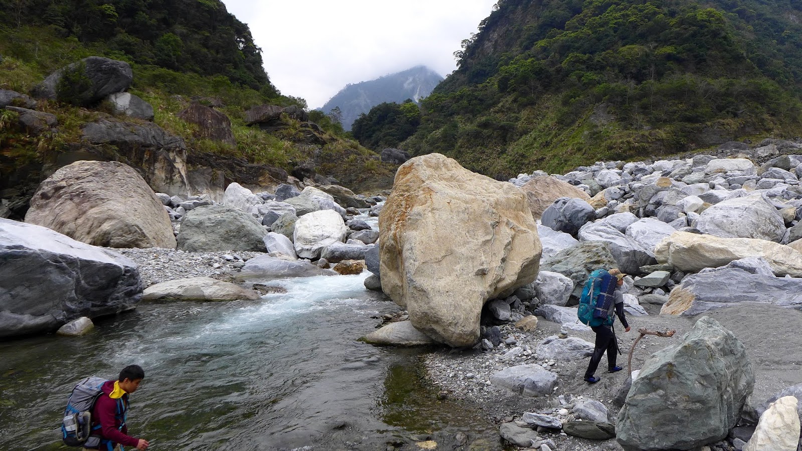 峽谷這一段流速較快,過溪點要挑,有一處要從水流中間一處大石頭下水渡溪通過,這邊要當心,窄谷這段同樣超適合拍照,通過窄谷後,河谷向右彎後再次轉回寬河床樣貌。