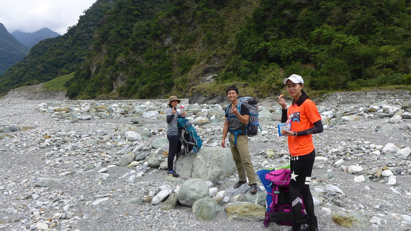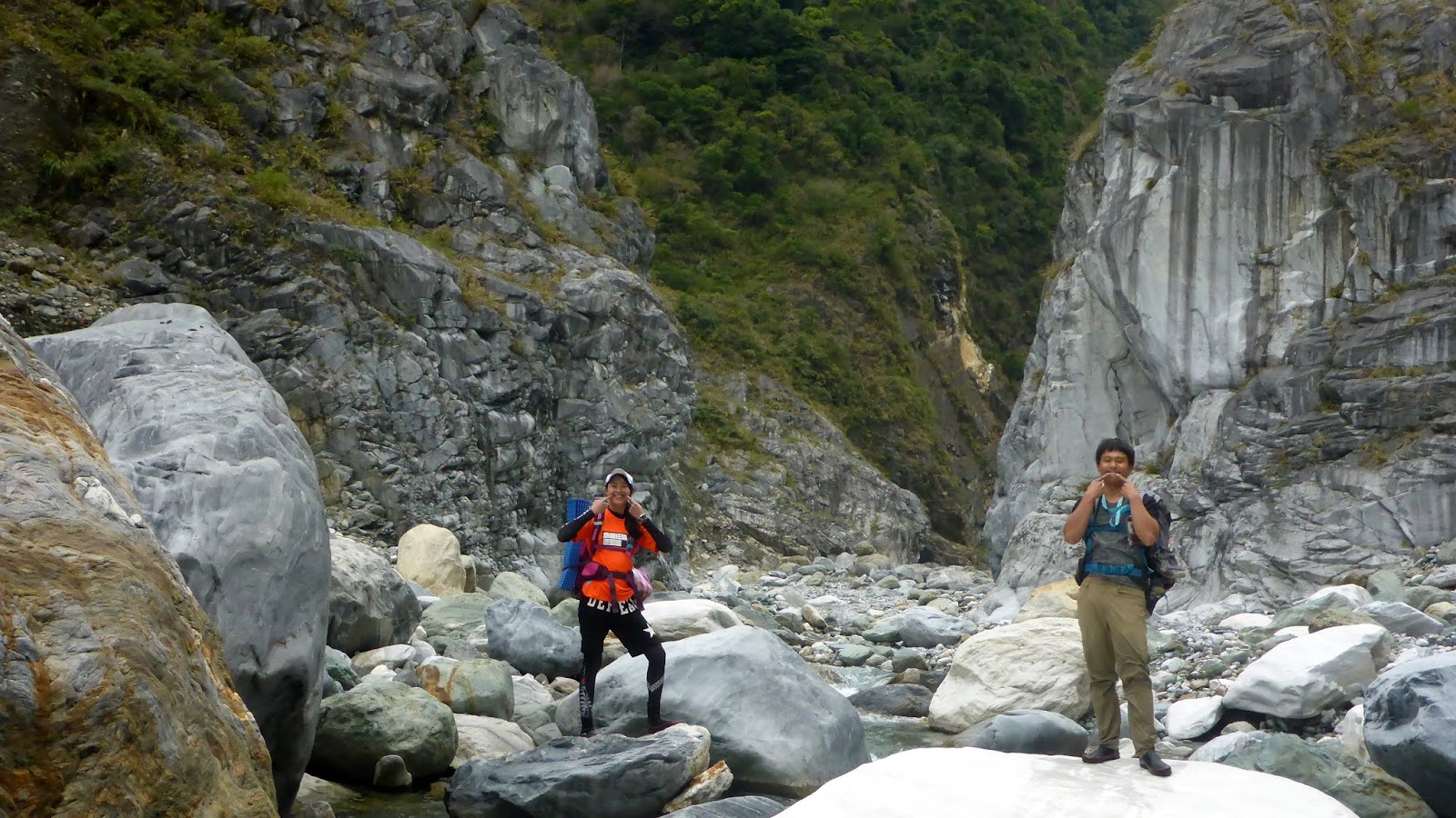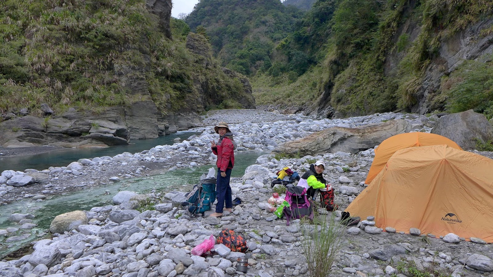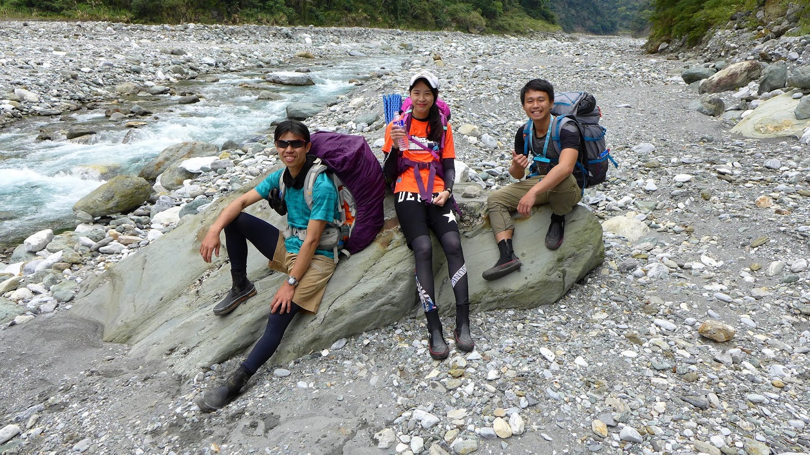 從門牙開始我們走到匯流處,含拍照休息的時間大約1小時40分,以兩小時路程的估算,溫泉應該不遠了,下午4點上背包繼續走,真的再到不了溫泉就找地方紮營。