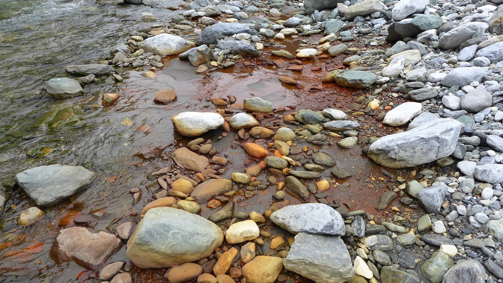 在整個沒啥變化的溪床景色中,這片岩壁顏色特別凸出