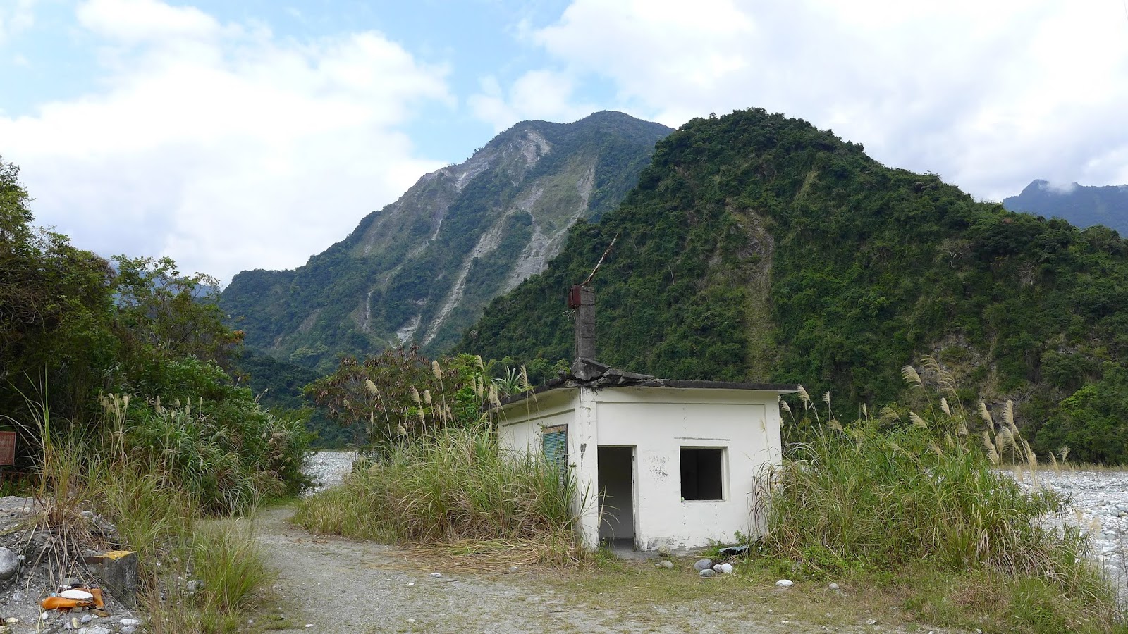 前往溫泉時,因只專心在路況,沒特別注意周圍環境,回來時邊走邊觀察,從門牙開始一共會經過右岸3道較大的支流,接下來就是攔沙壩圍體,看到圍體時就知道剩沒多少路程了。