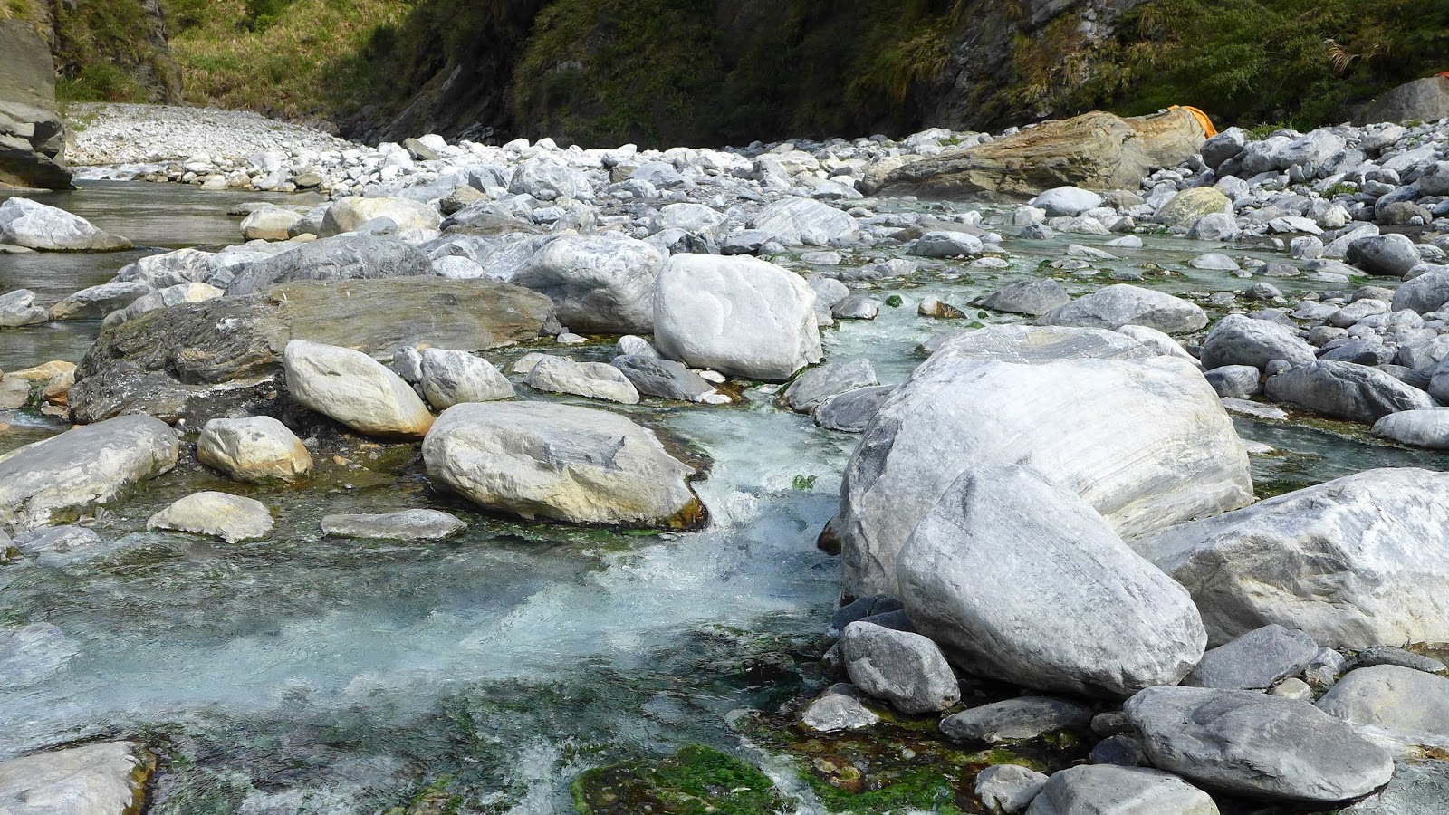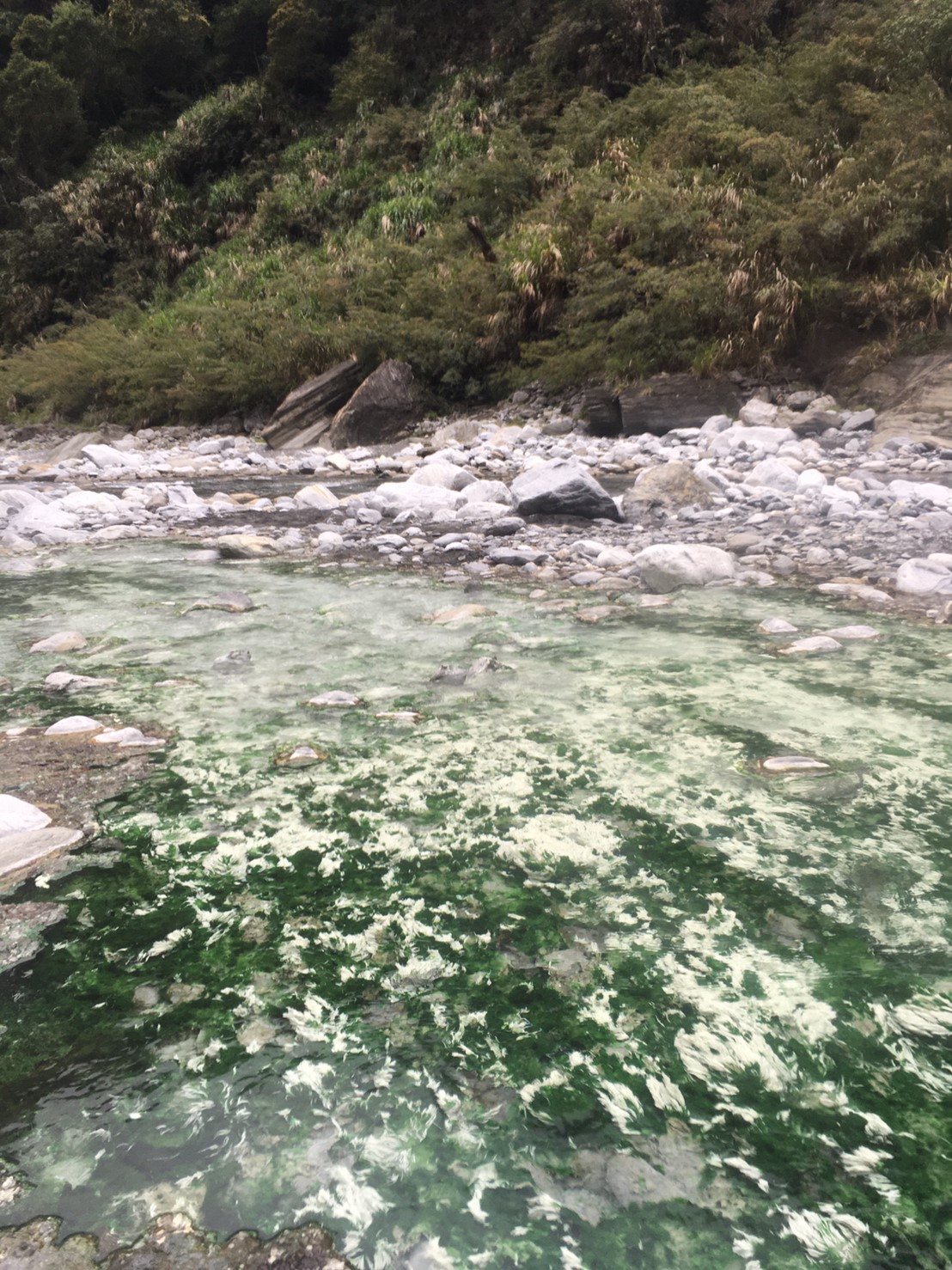 有一處溪石顏色與眾不同,不知附近是不是也有溫泉頭