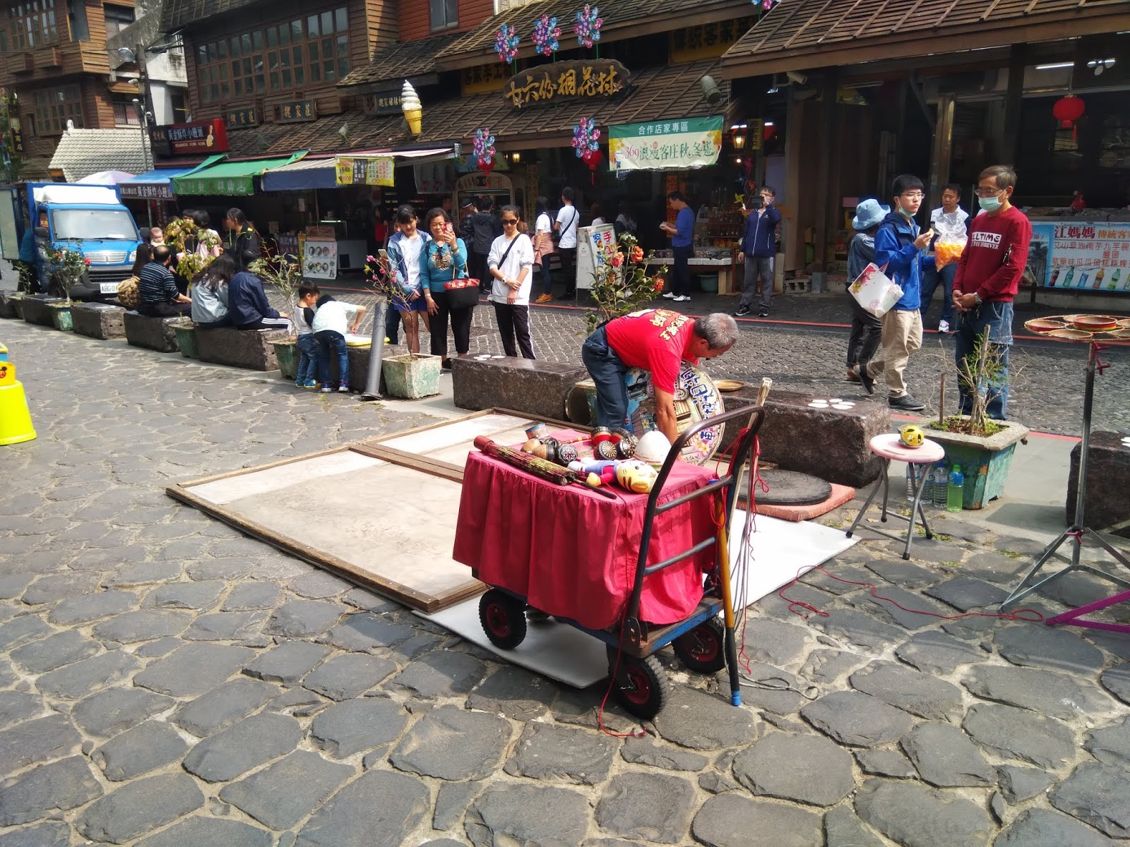 一抱上去就聽到吆喝一聲,隨即拉動繩子使得陀螺在這台子上順利轉動,對於只會打小陀螺的我來說實在是看得嘆為觀止!