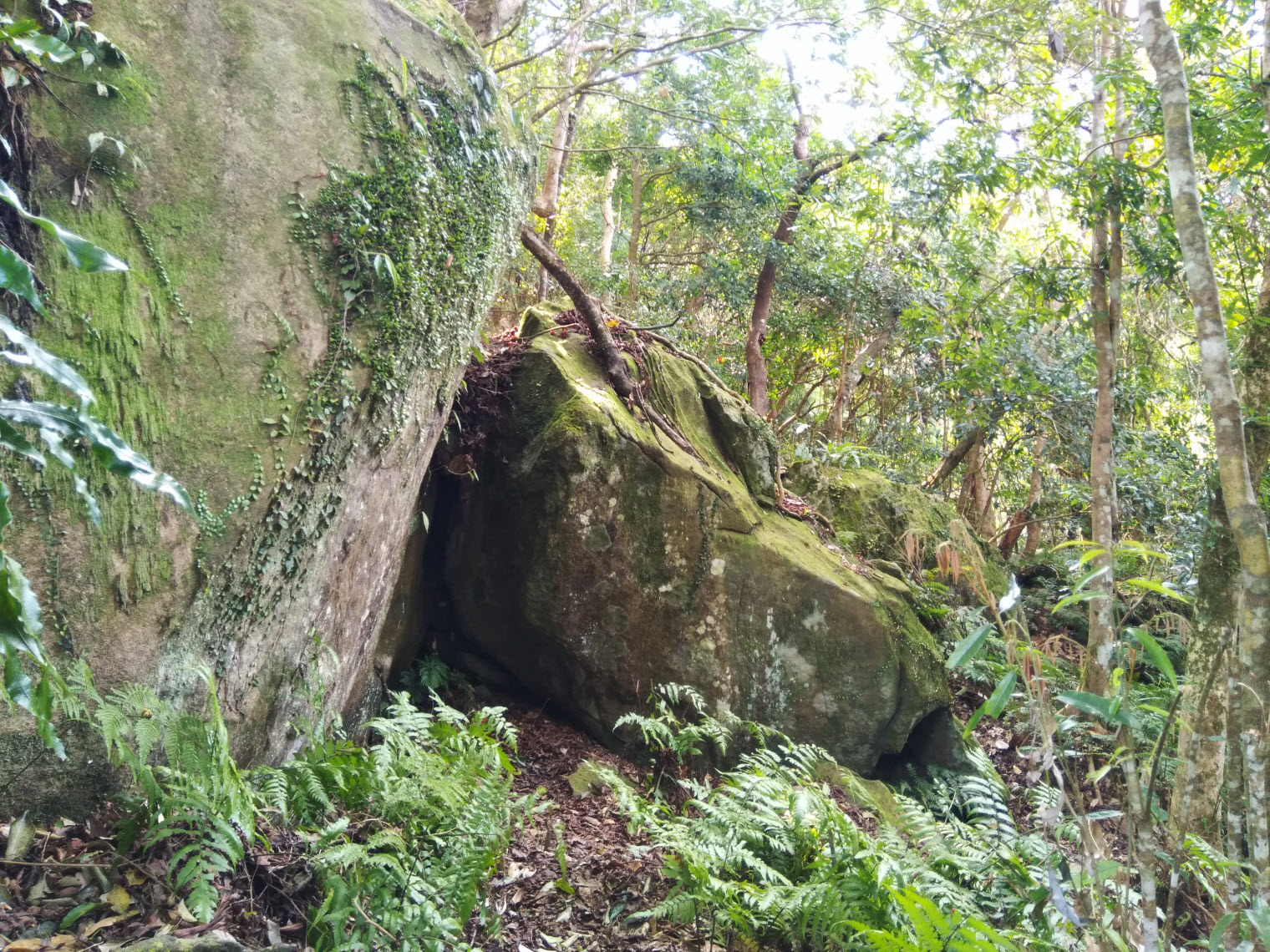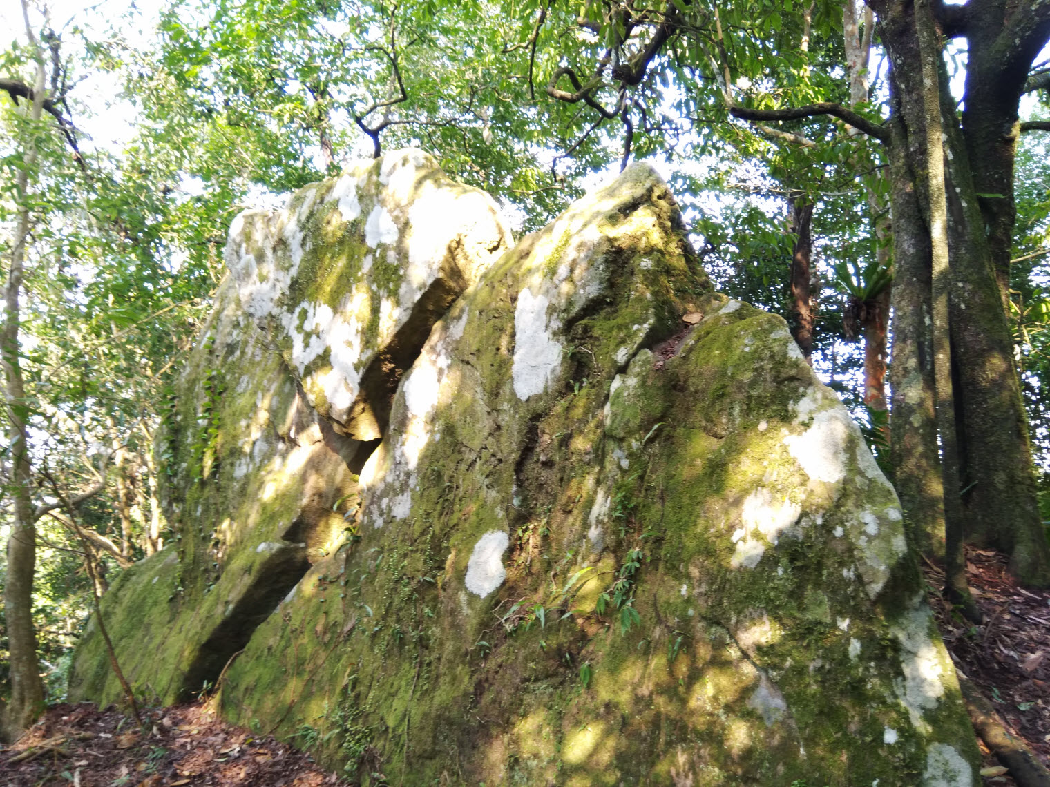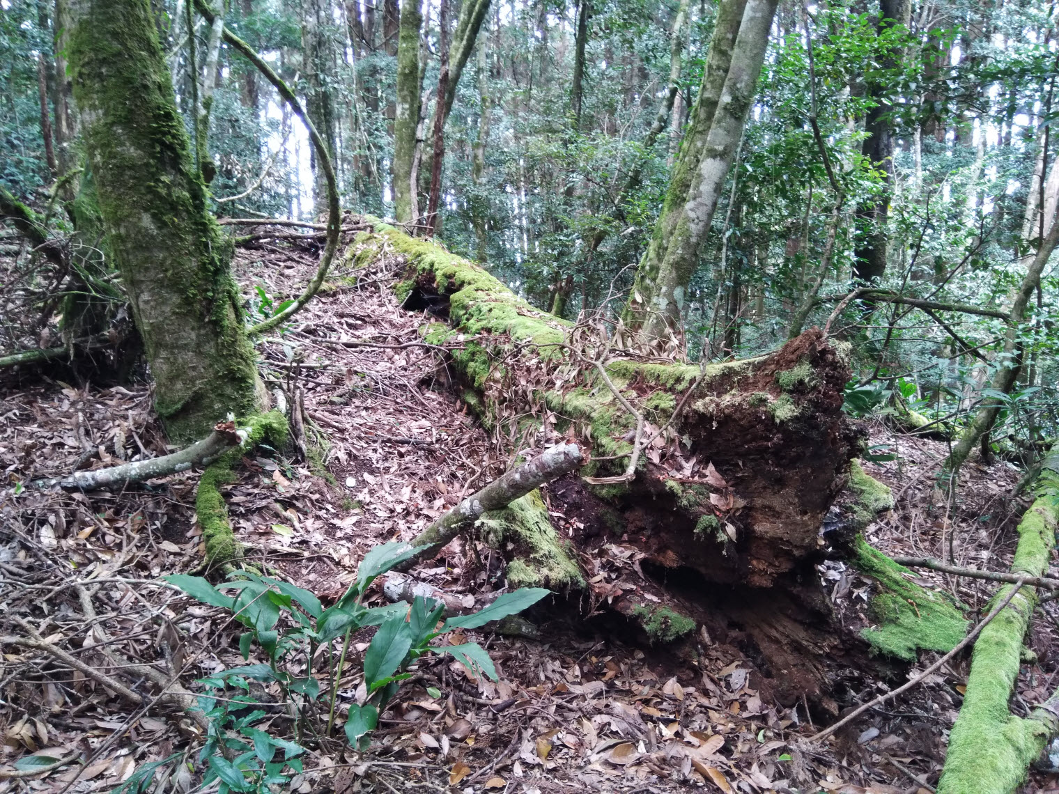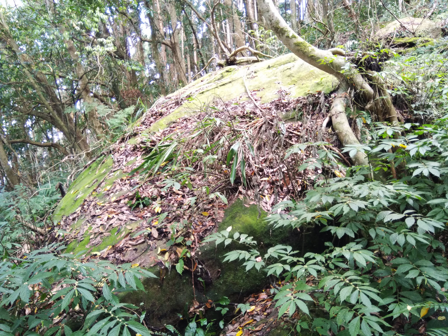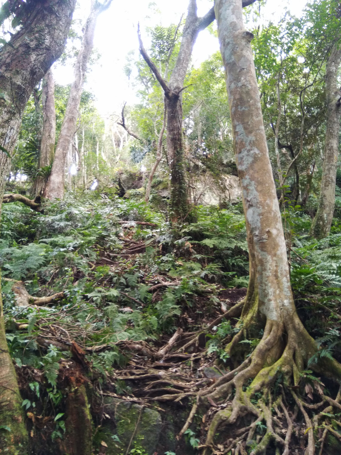 混生林的原始山徑夾雜著長青苔的石塊