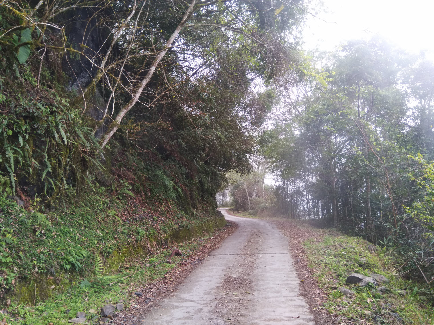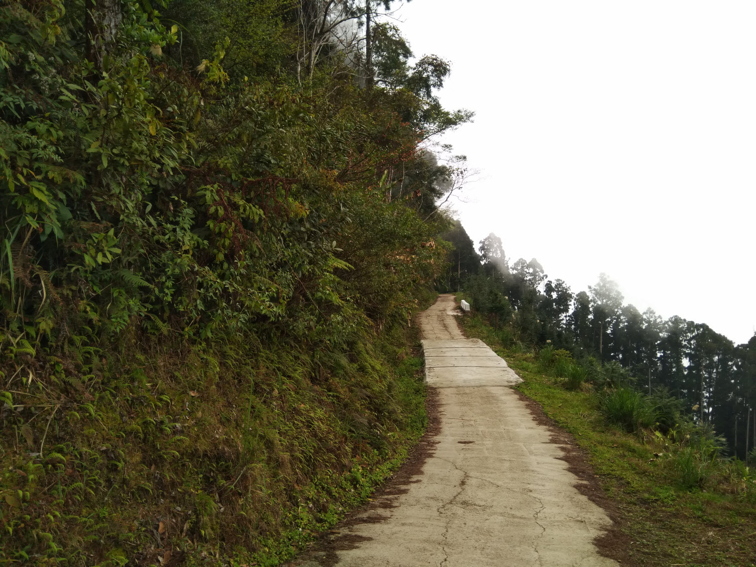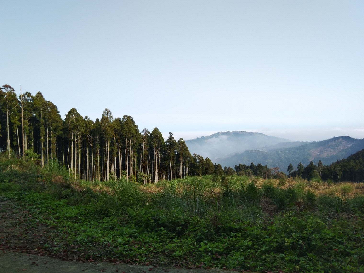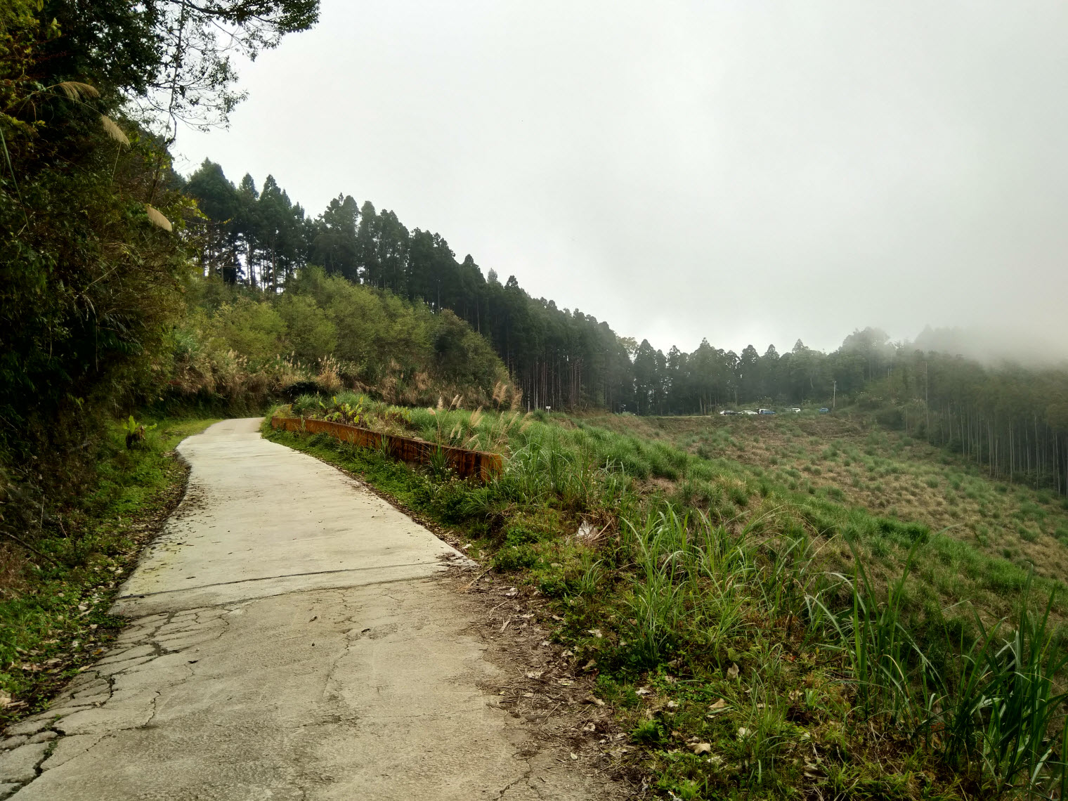 當下約莫12點半,雲霧已飄散在林道旁