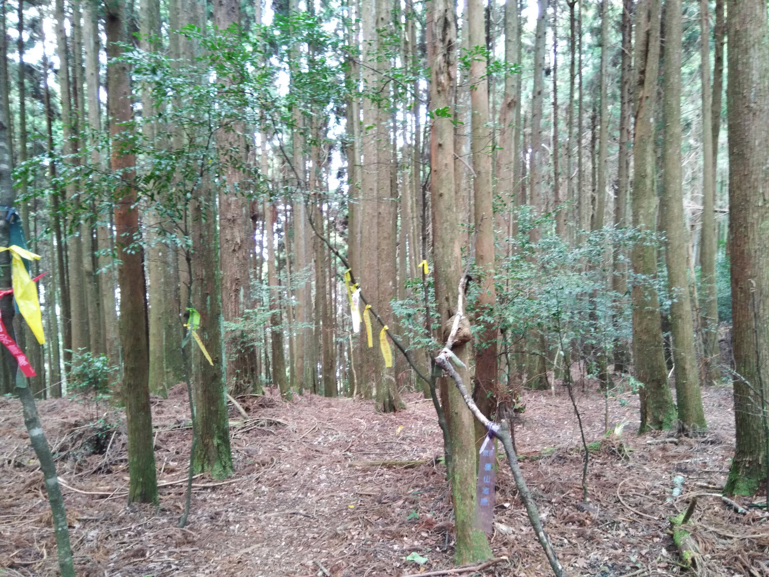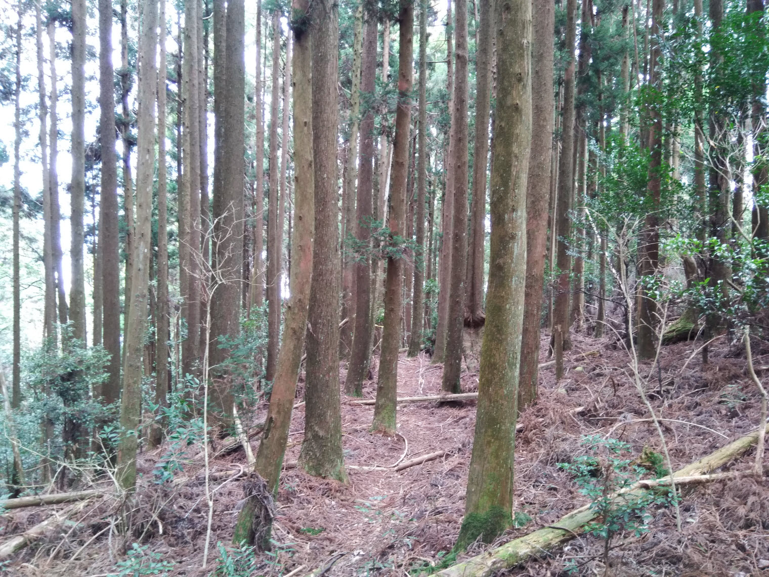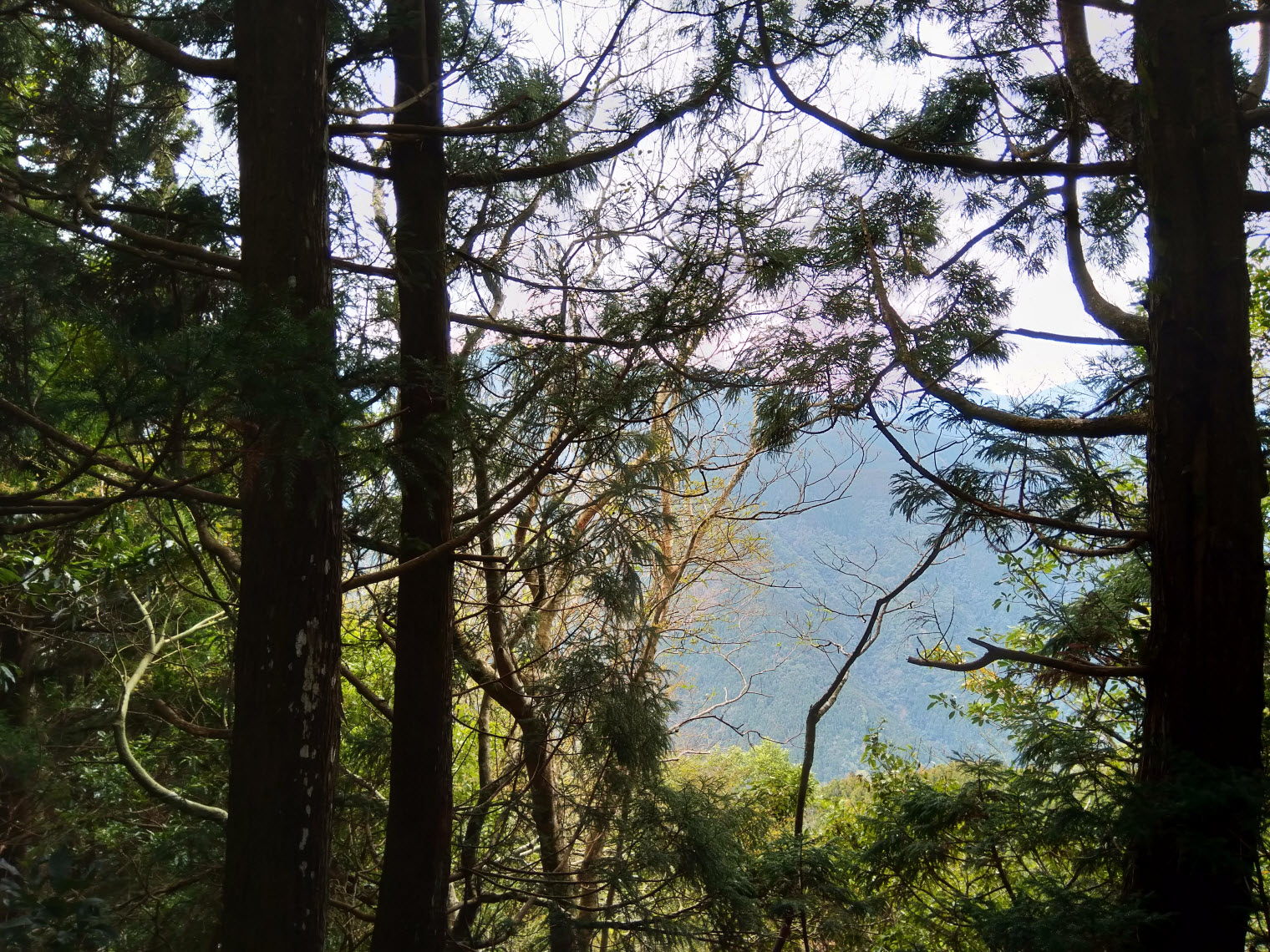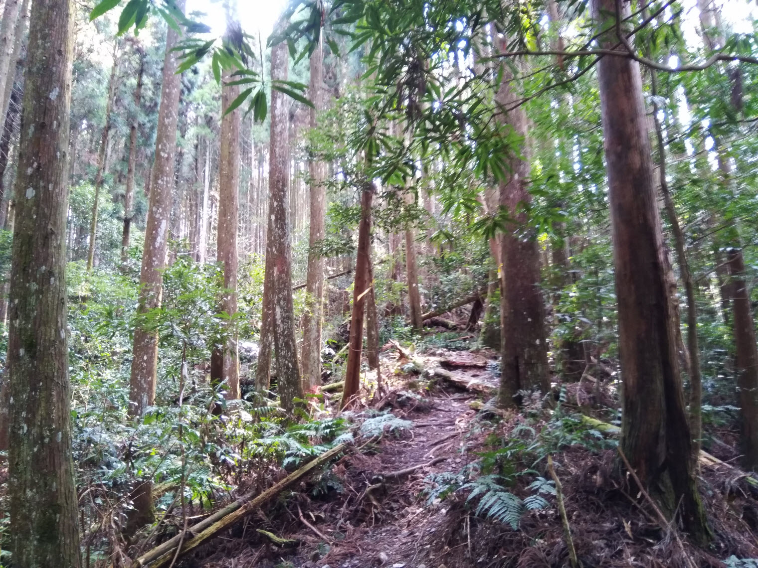 這一段下山的路比起上山的路更輕鬆單純,起初都是走在杉木林內,而且都是緩下坡