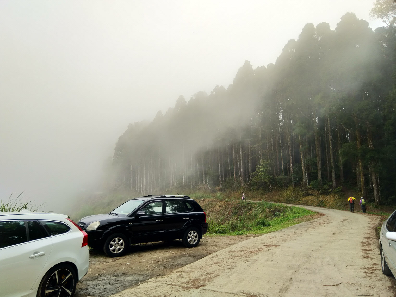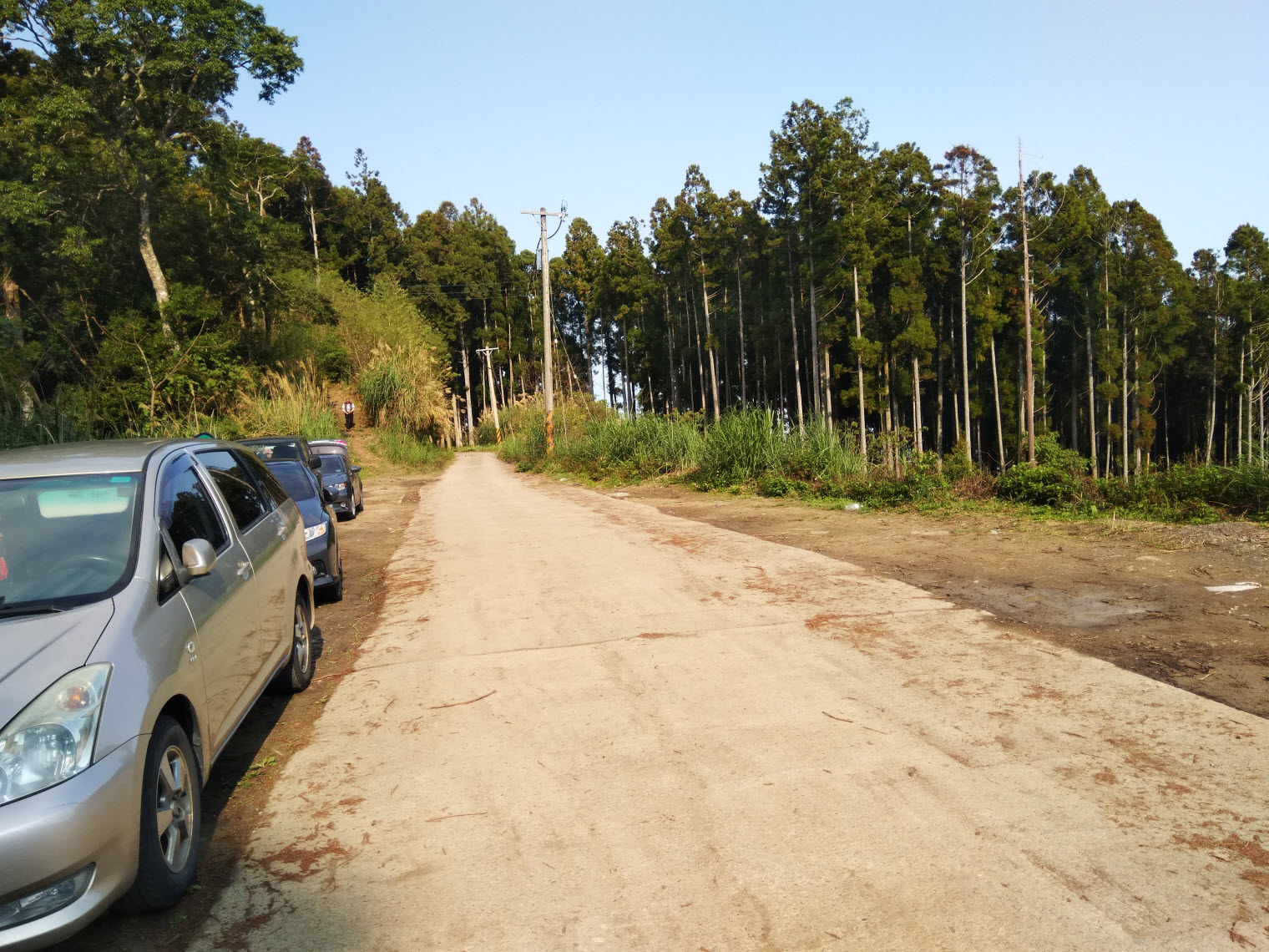 話說怎麼知道行駛至登山口了呢? 沒錯~ 就是看到車子啦XD。當下9點鐘抵達時右側空地只停了兩部車,我才剛停好又有兩部車出現,因此光這一側就可以塞滿5部車,再加上另一側的話停個8~10部不是問題。
