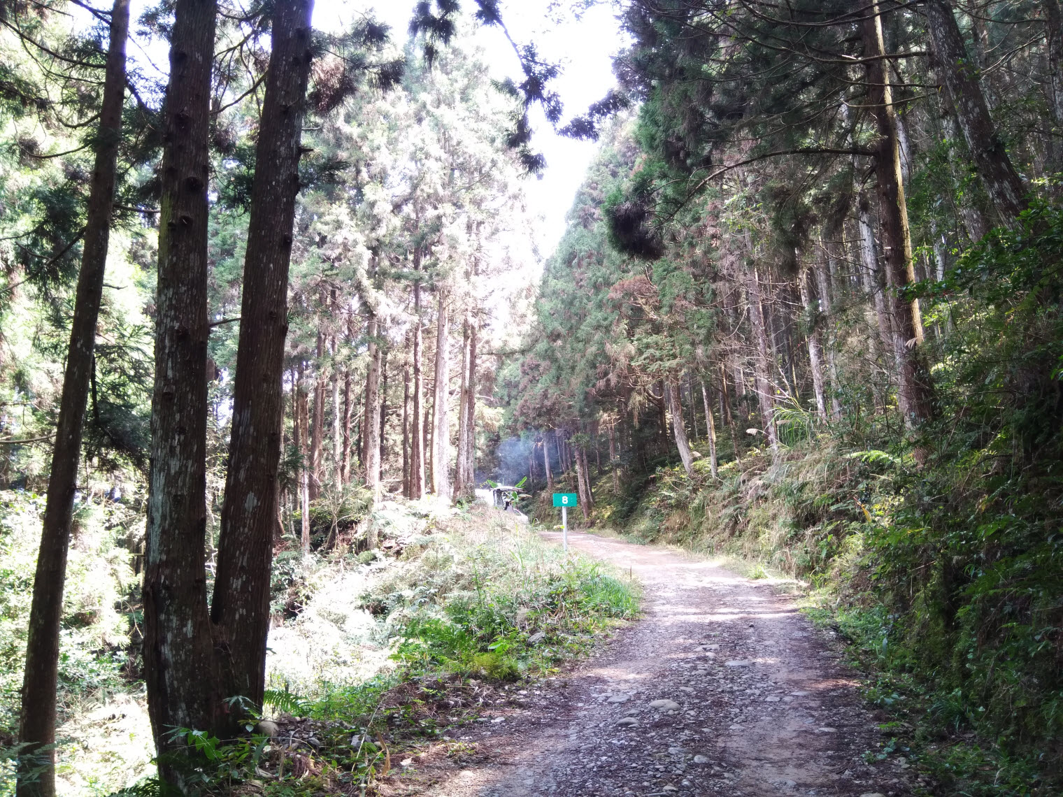 原來這裡是林道的8K處,這樣往第一登山口起碼還有5~6K的距離,當下也看到前方路邊停了幾輛車,後來走回去的路上才知原來很多人利用路邊的空地露營,真的是好愜意阿~