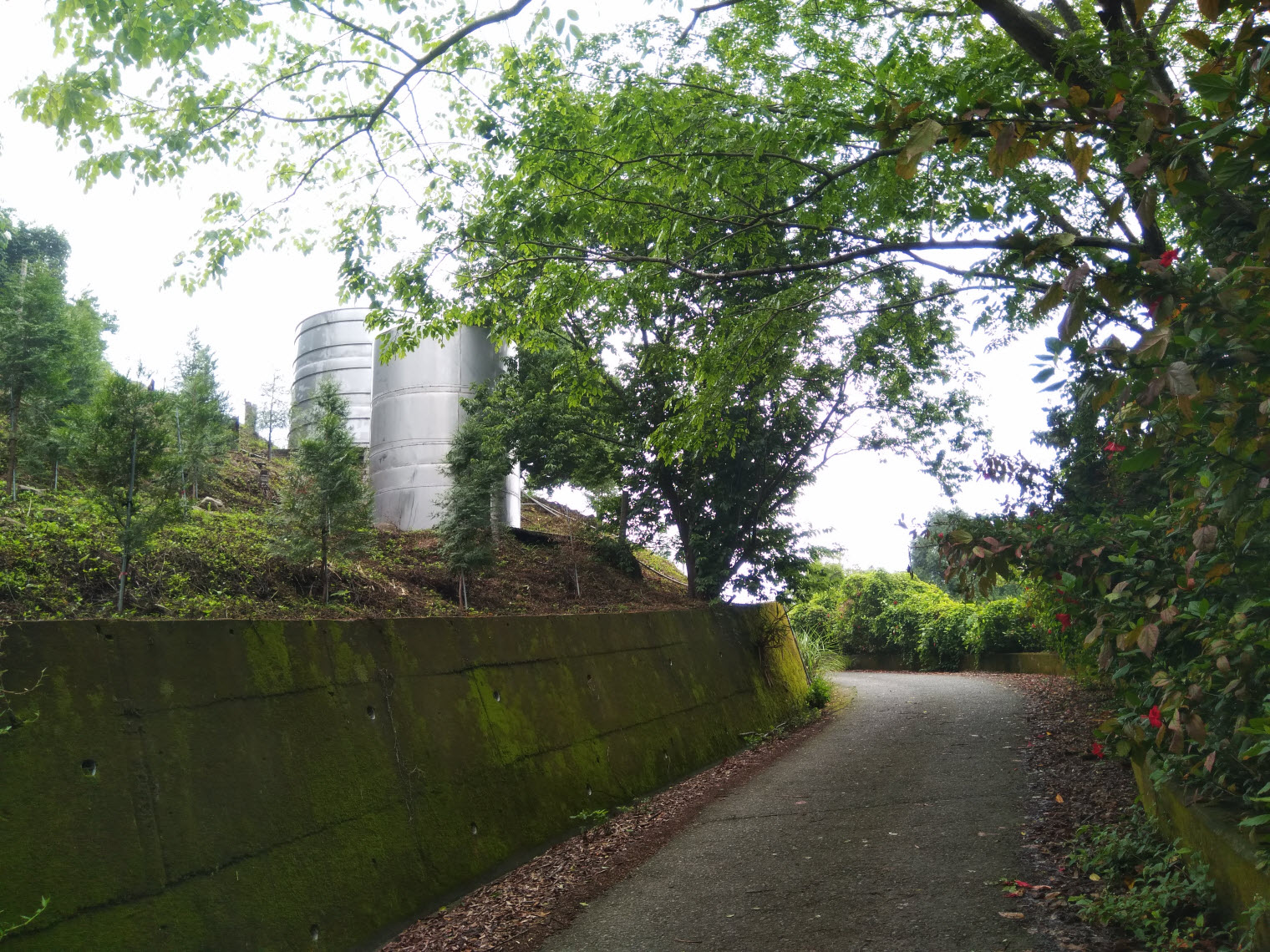 人為整理後的綠地搭配幾株樹木,使得走在這單調的產業道路上增添些許可看性