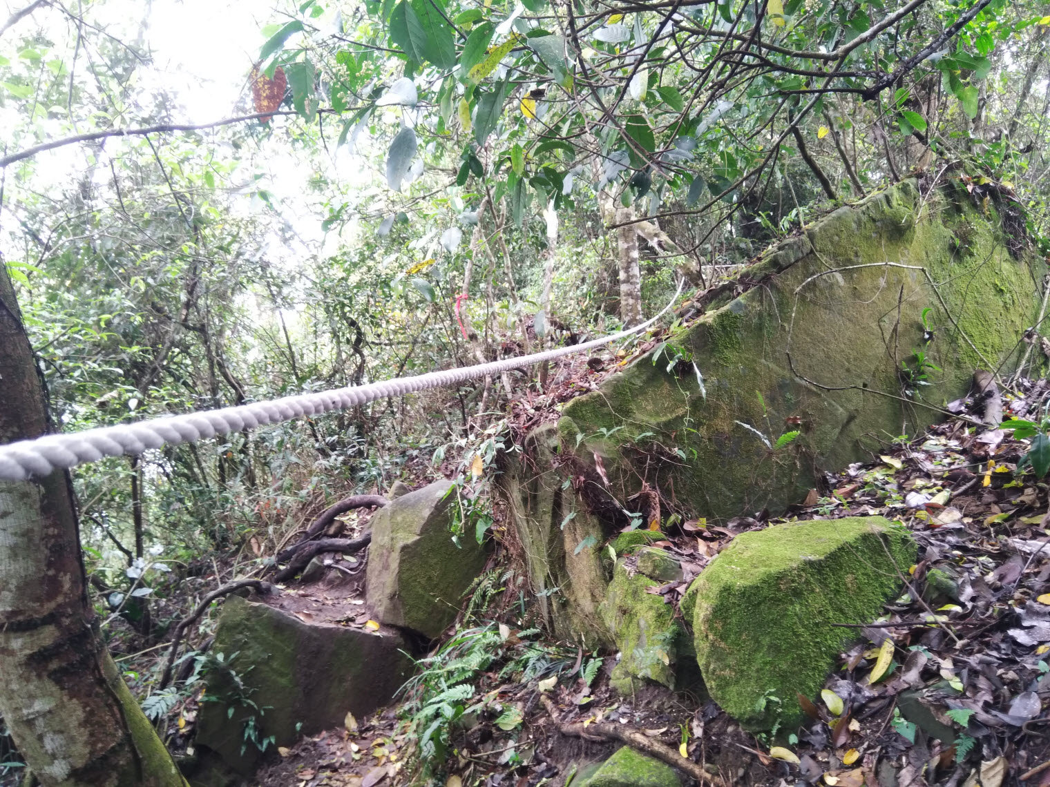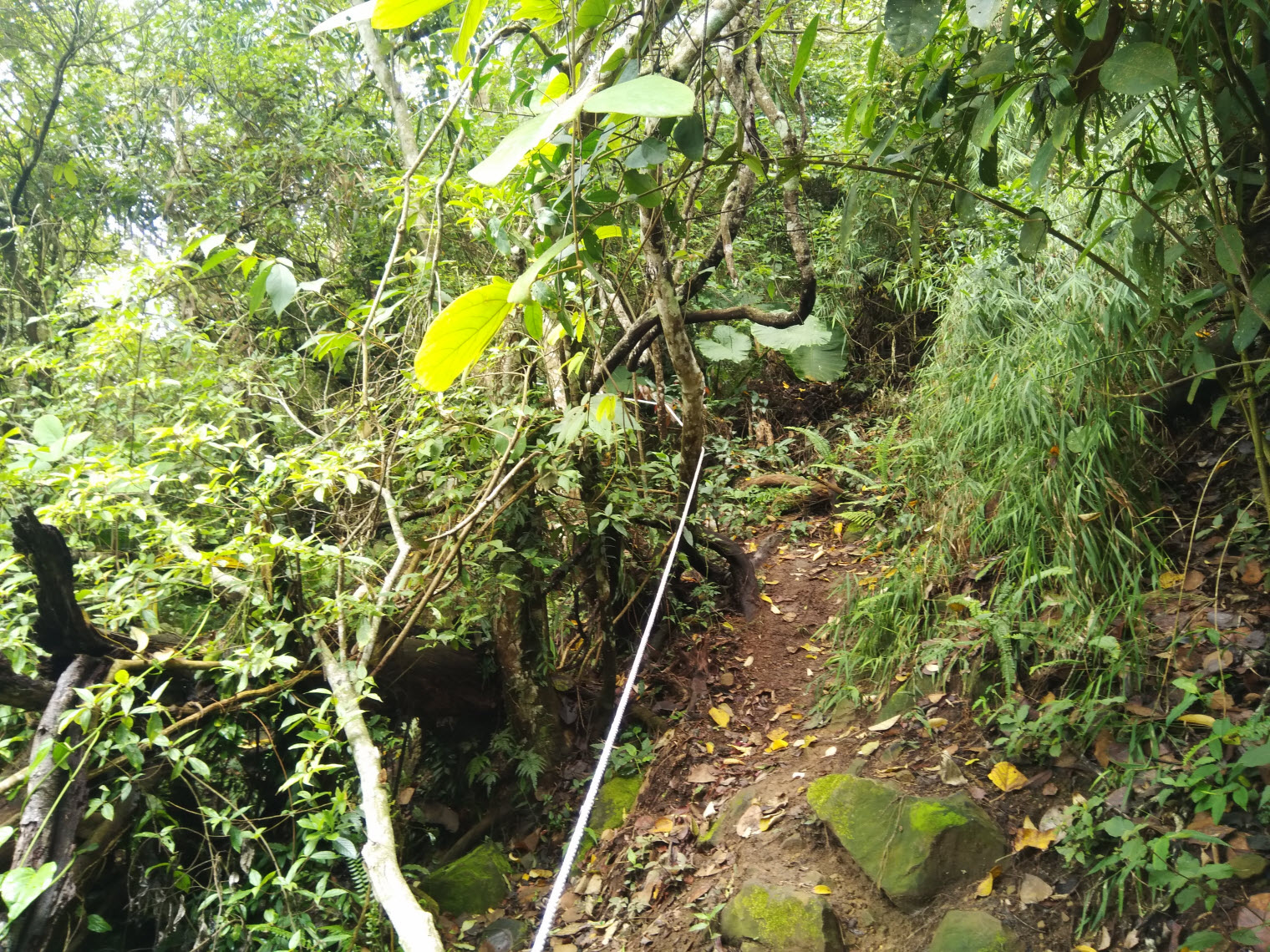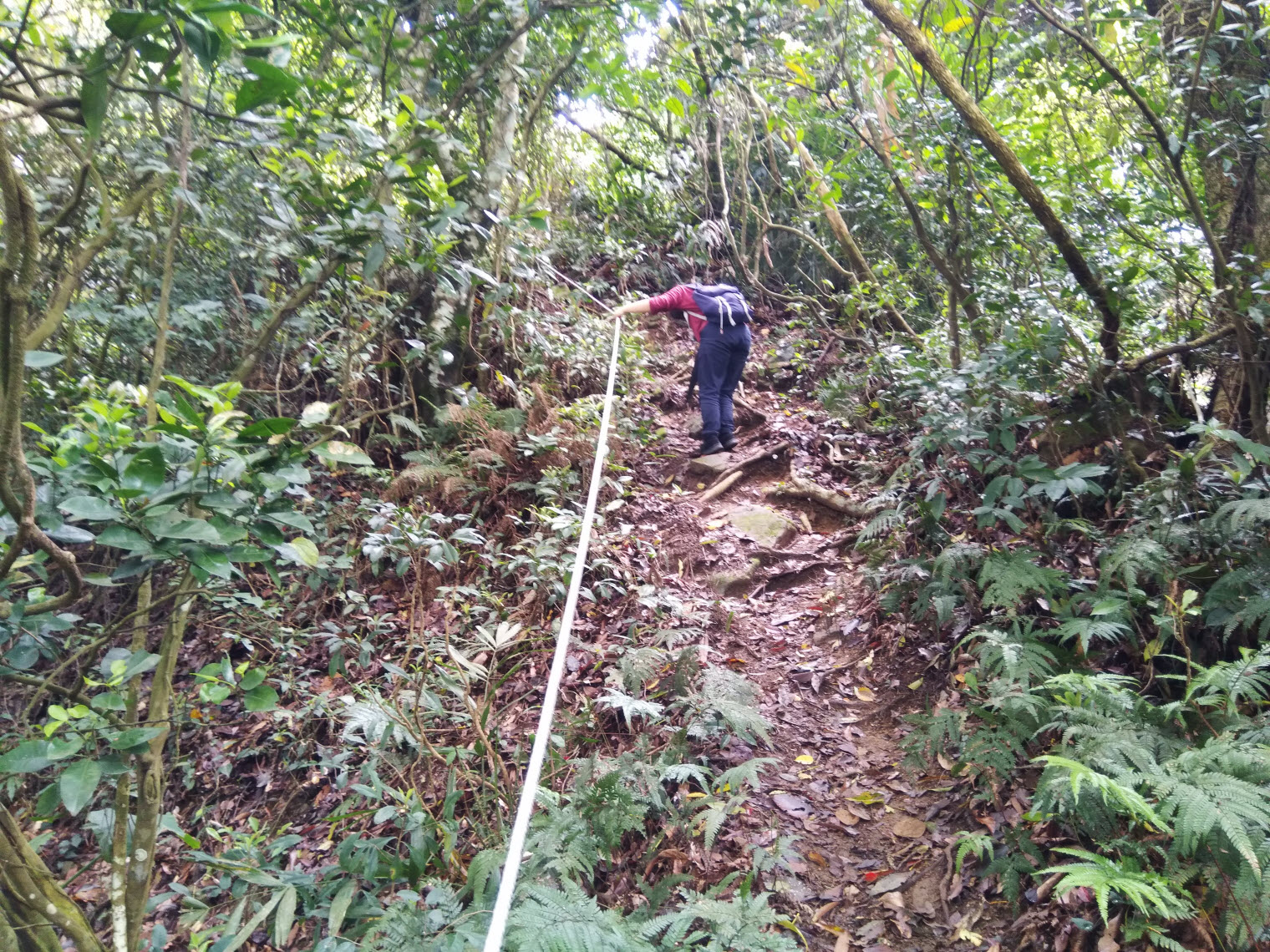 幸好沿路的緩坡有好心山友設置拉繩,可以增加下山時避免滑倒的安全性