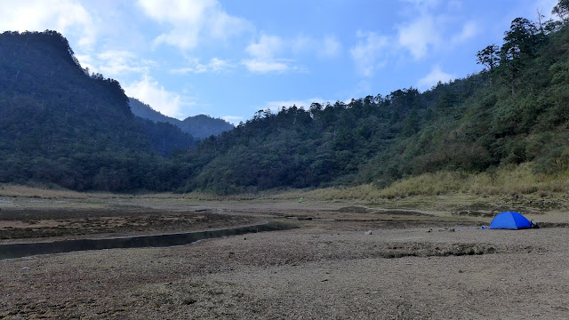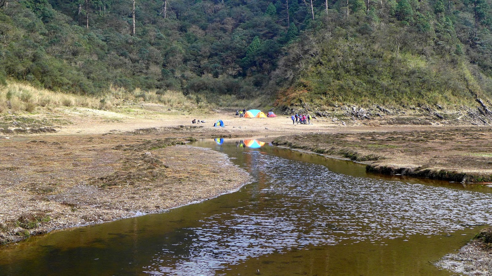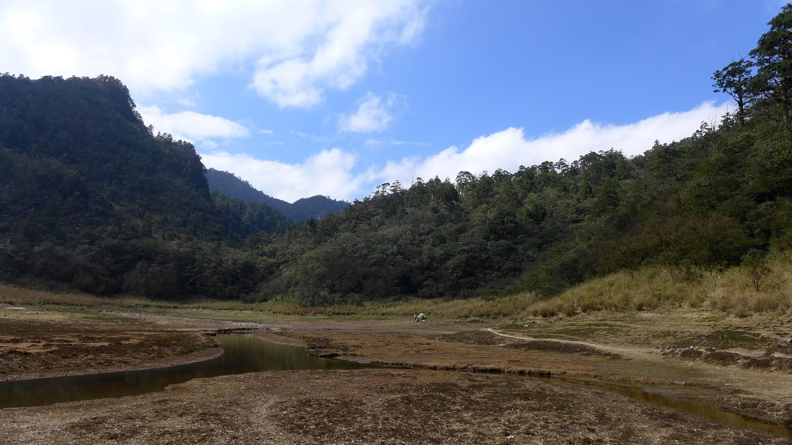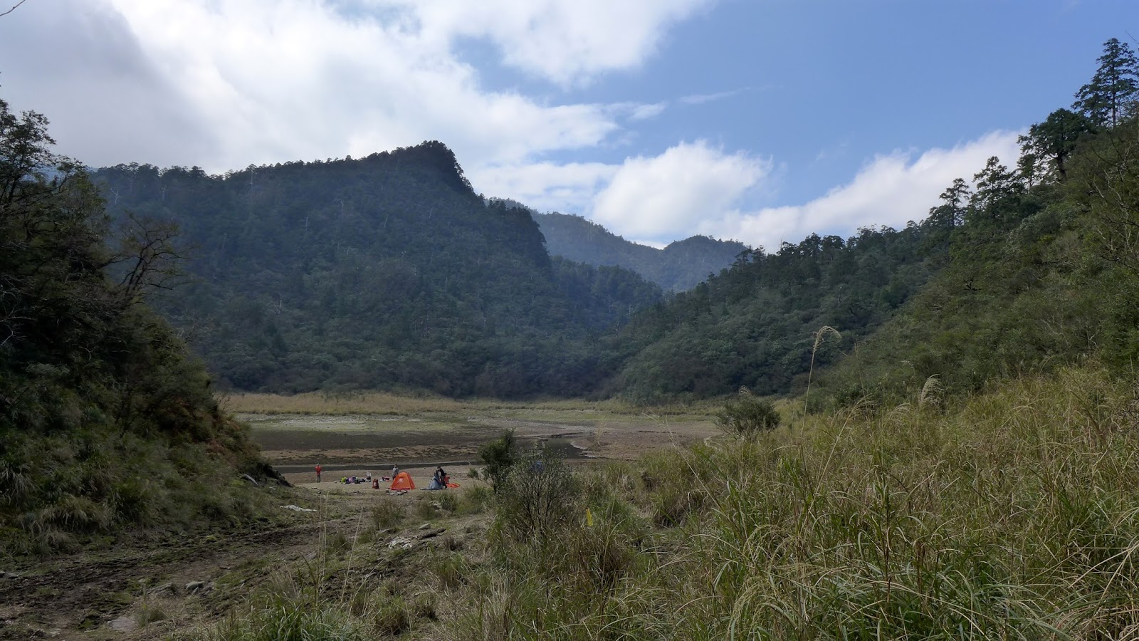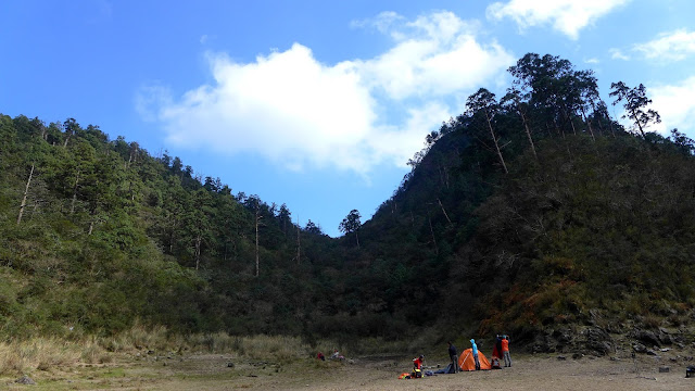 350M的距離下坡很快,一下子就到了,看到大片的空地,抵達目的,只是水似乎少的出乎意料,找到先出發的彥安和爾柔,他們還帶個帳篷上來搭睡午覺,來去串門子。