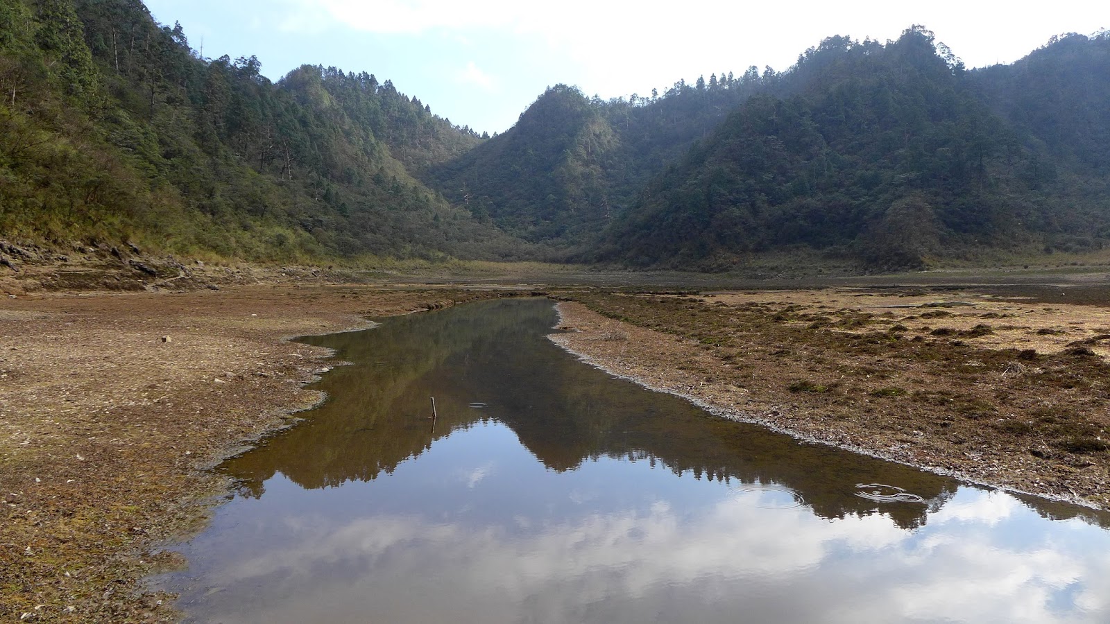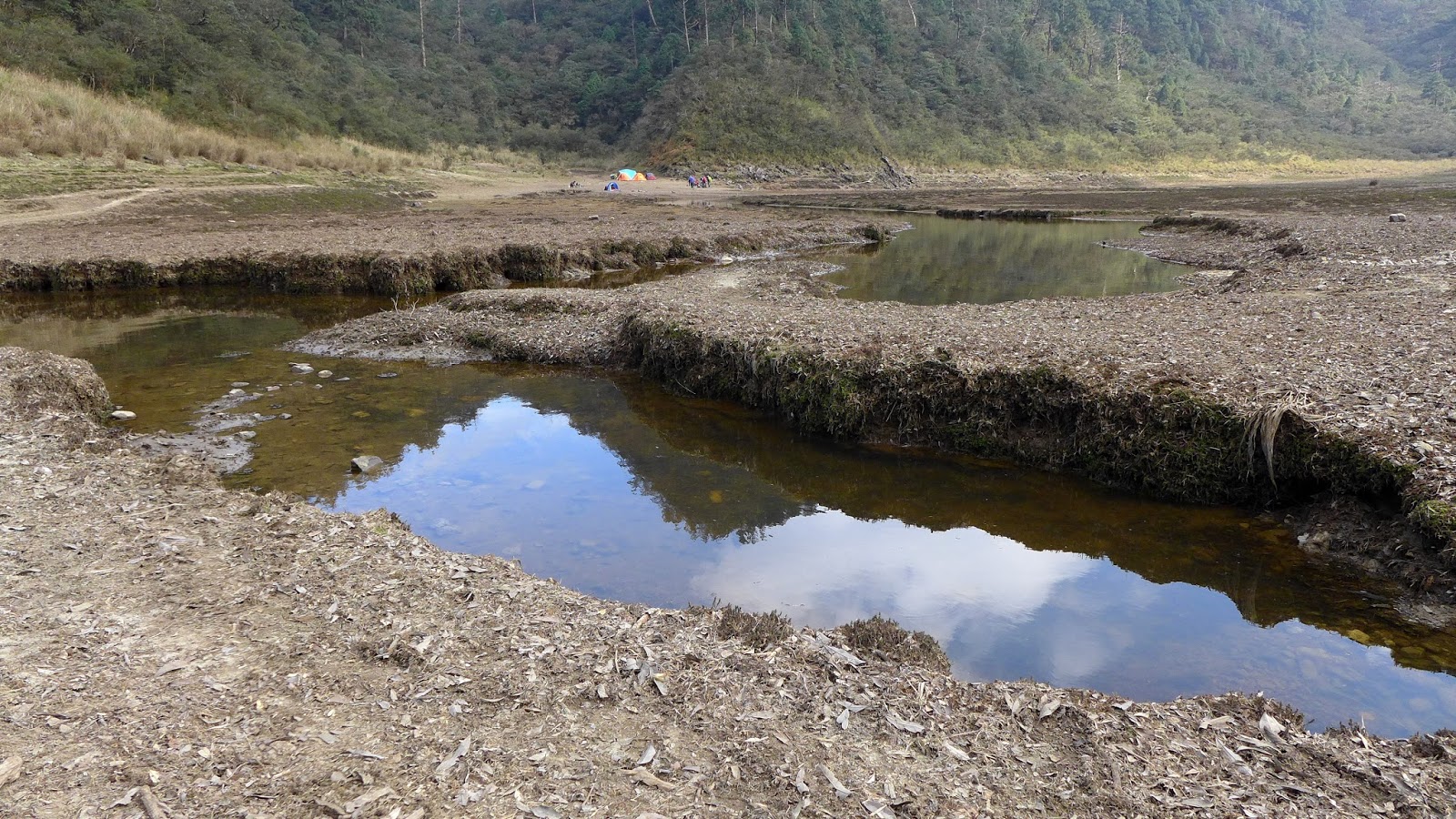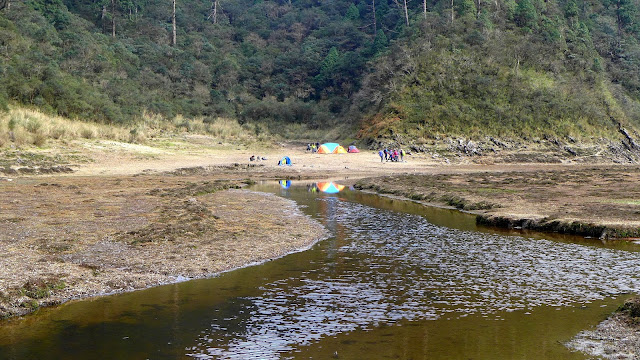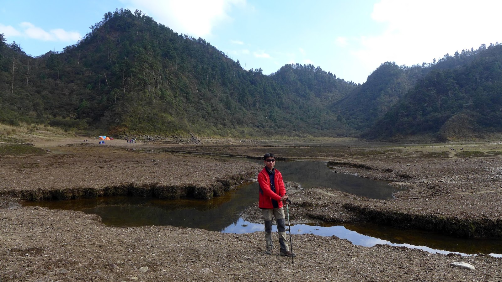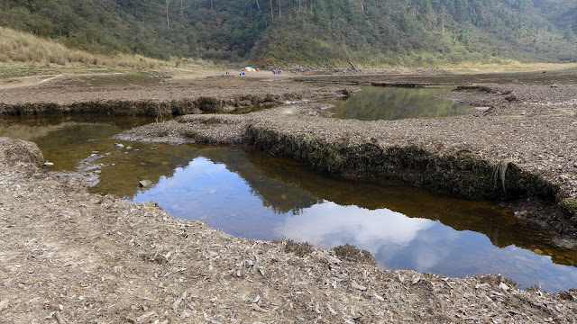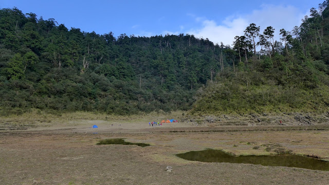 350M的距離下坡很快,一下子就到了,看到大片的空地,抵達目的,只是水似乎少的出乎意料,找到先出發的彥安和爾柔,他們還帶個帳篷上來搭睡午覺,來去串門子。