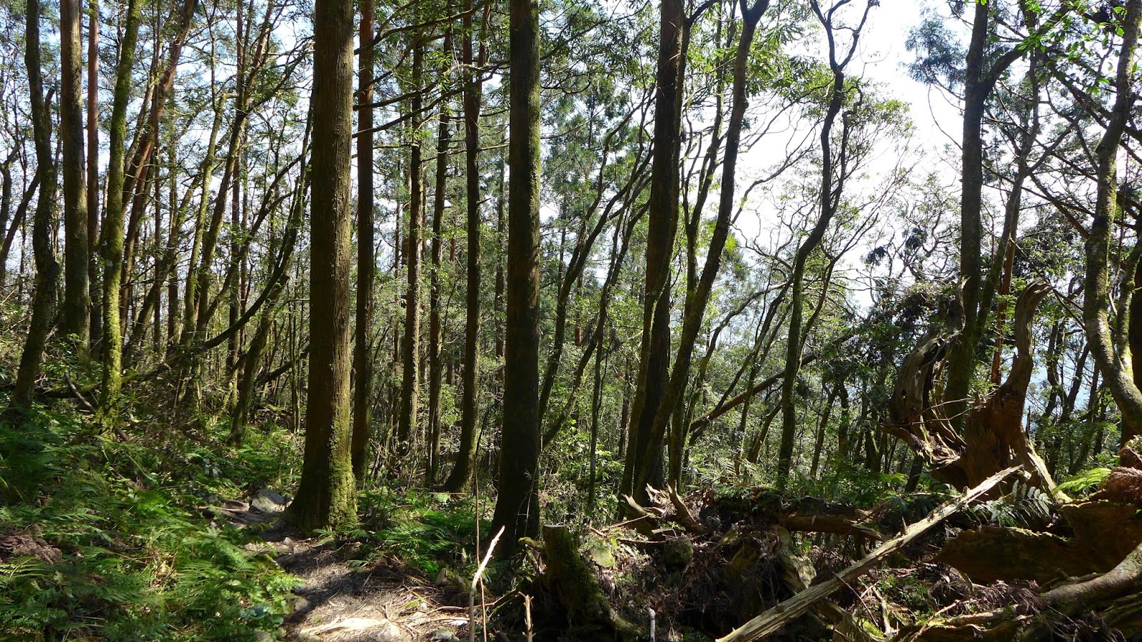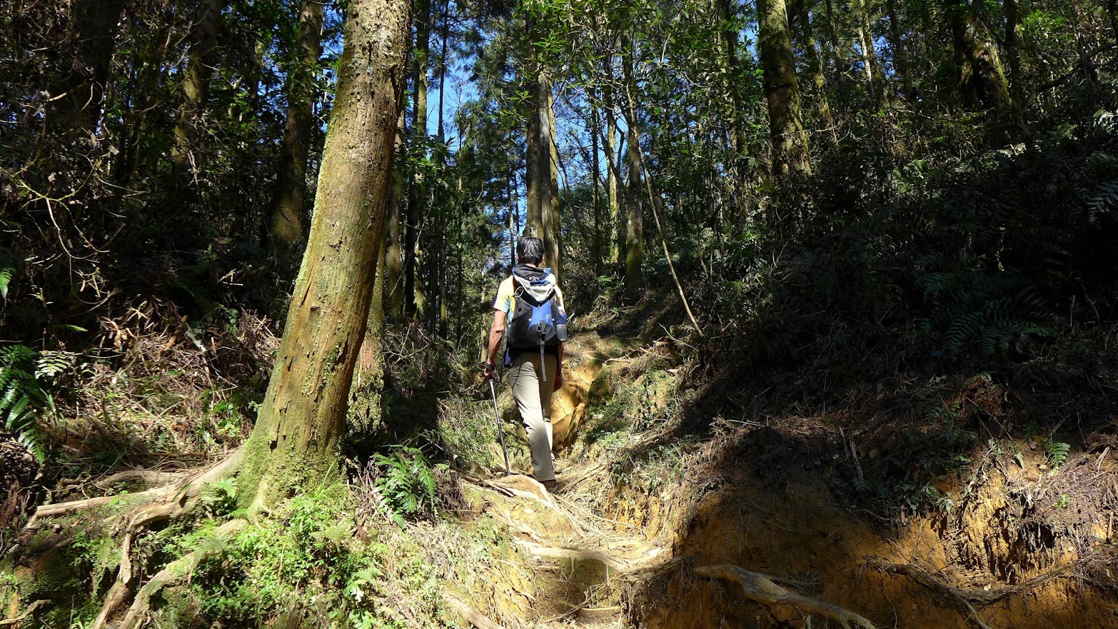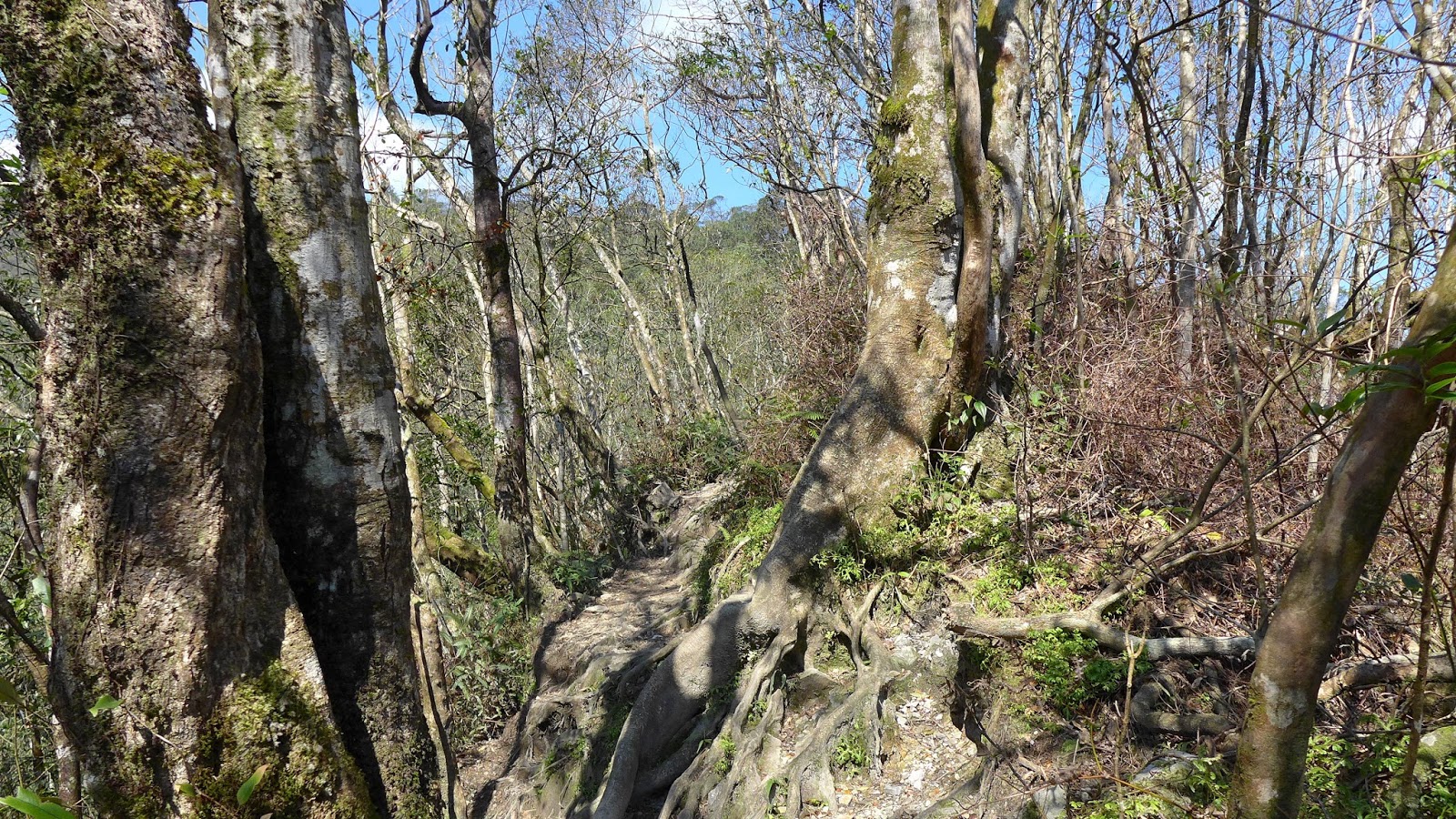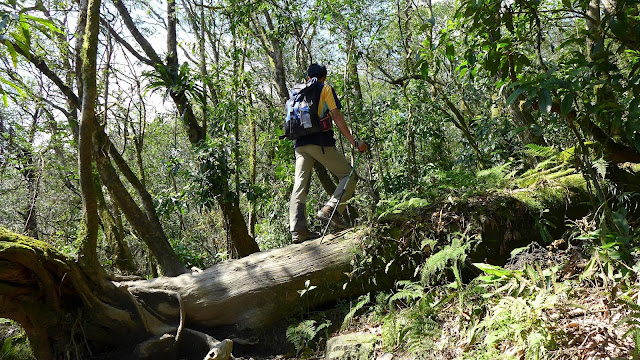 但實際果然沒那麼好過,水龍頭之後開始爬升變得明顯,雖不至於超陡,但也是稍有陡度且持續,到最高越嶺點2.7K路程中,只有一段不長的平緩稜可以輕鬆走。