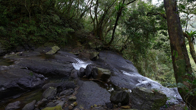 水氣太強,有冷,拍完趕緊開溜,再吹下去都要招架不住了,在這搞了近1小時,1點開始森山瀑布及組合山出發,由旁側山徑上爬。