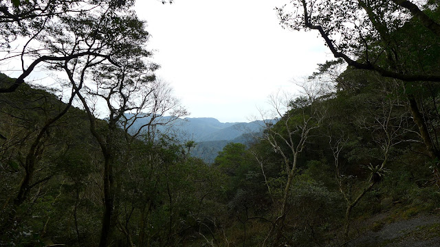 馬上要還爬升了,連續陡上,只有中途過一塊小空地小緩一下後,繼續陡上,還沒過溪前遠遠就看到圓圓的滿月圓山和要去的組合山,現在的上切就是要到那邊的稜線上