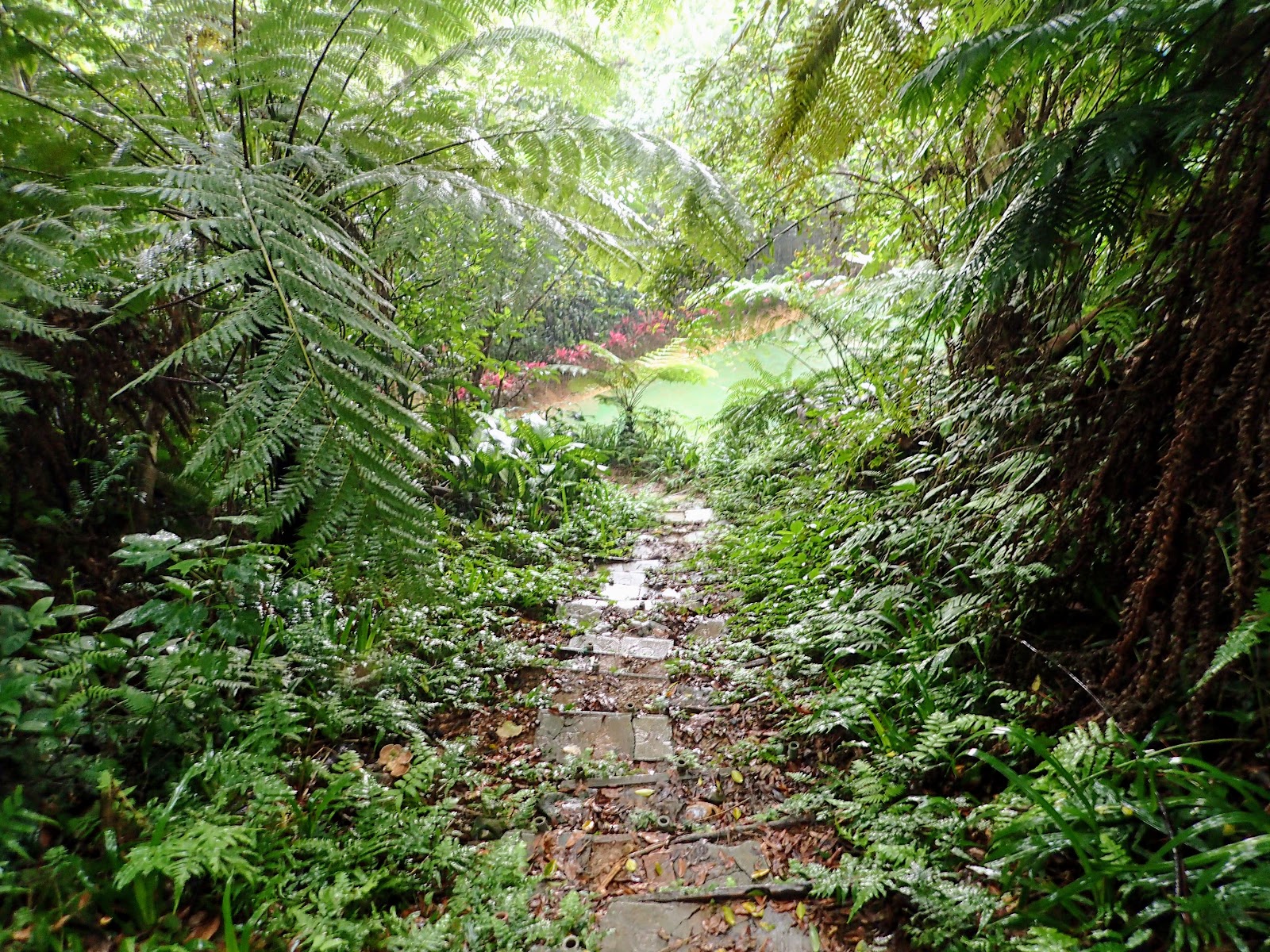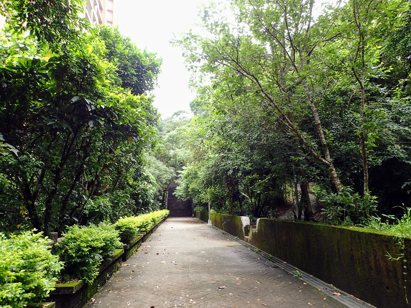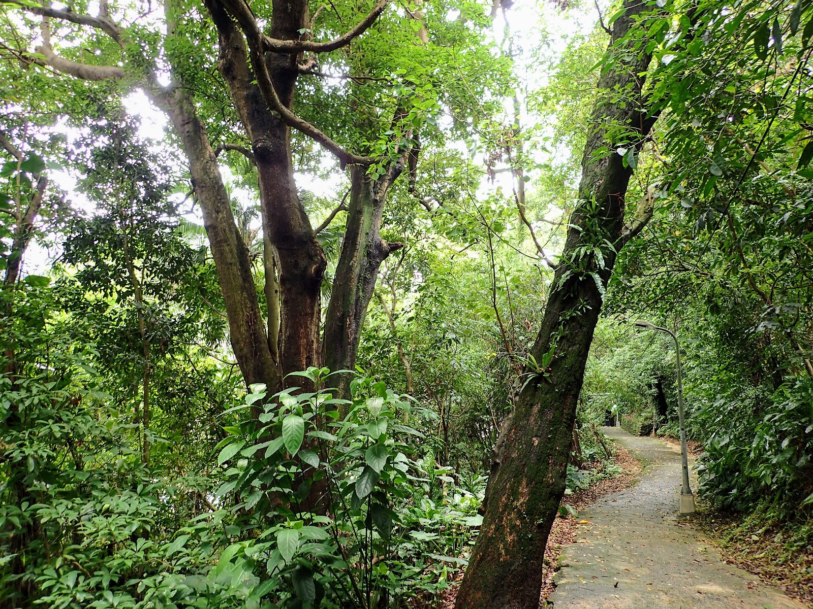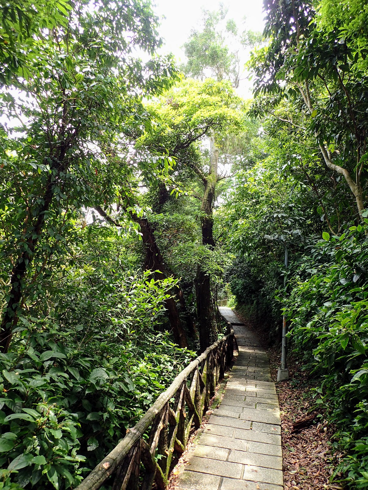 步道清幽樹木遮蔭, 可惜此刻沒風, 感覺有點悶熱