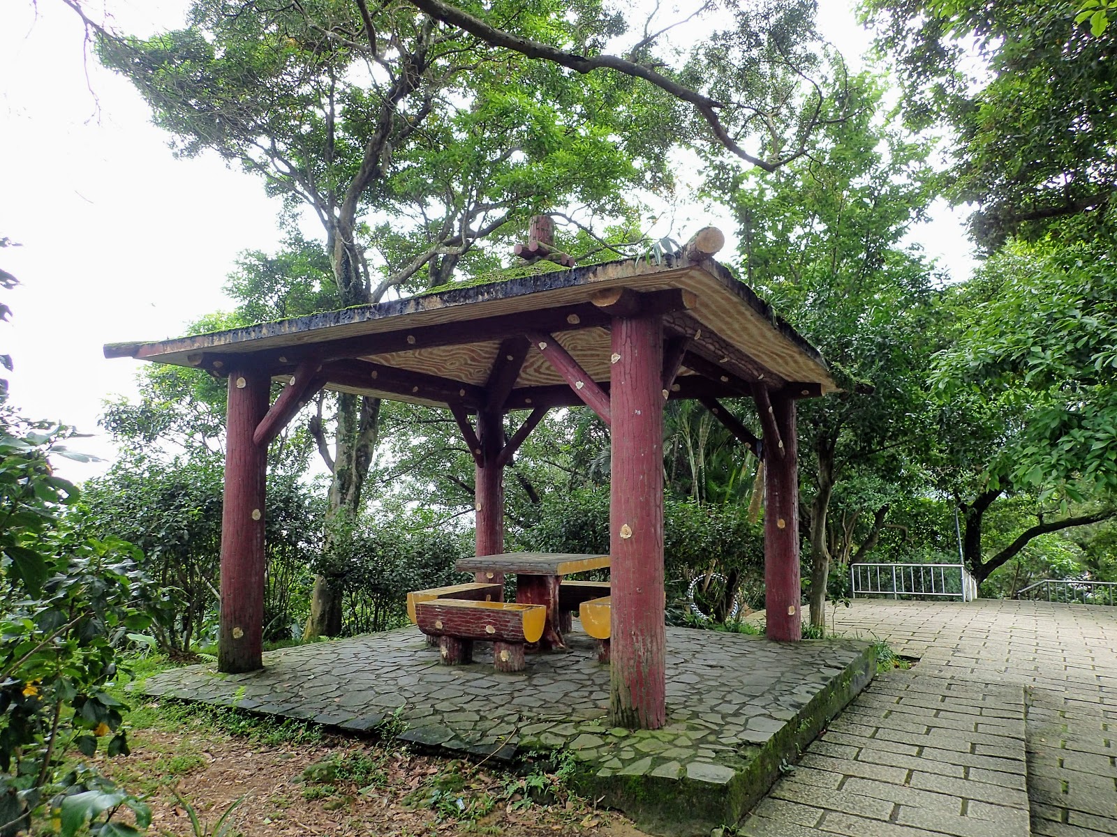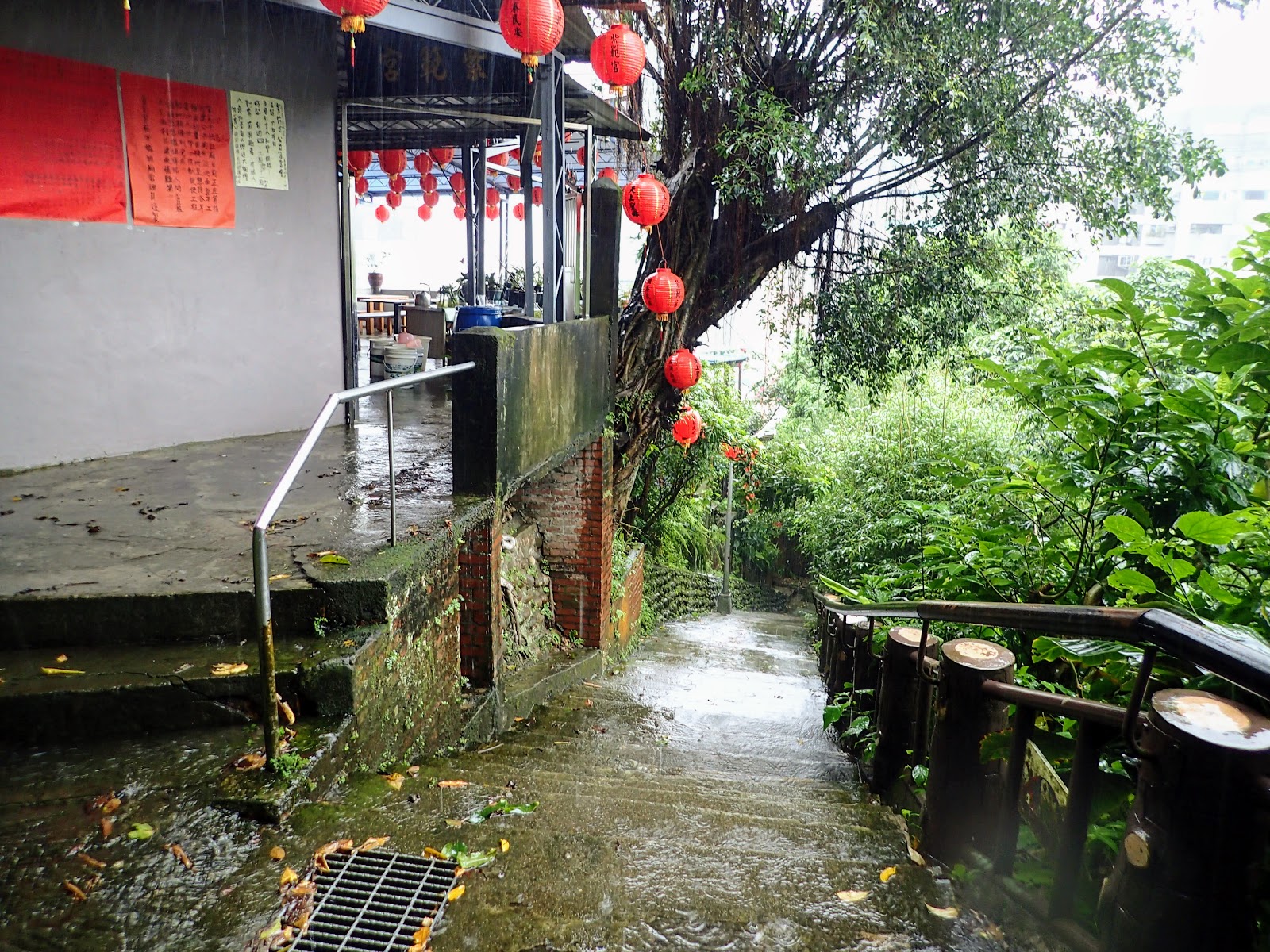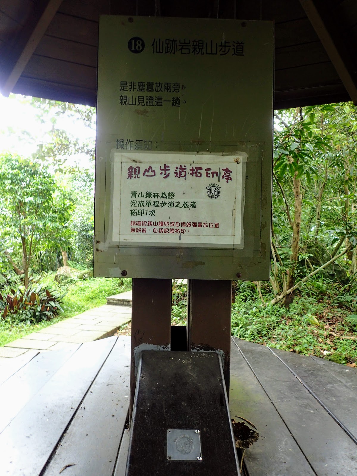 決定續往仙跡岩, 瞬間傾盆大雨毫不客氣的灌頂, 陡上爬階梯時感覺心臟無力喘不過氣, 緊拉著旁邊鐵扶手深怕昏厥倒下, 每走一步就停下休息等呼吸心跳平穩, 雨瘋狂打靠著意志力撐, 癱軟無力好不容易爬到涼亭, 休息片刻後這才恢復正常, 帶著閃電雷聲的暴雨沒停歇的感覺, 走吧不能停留, 要趕緊回家....