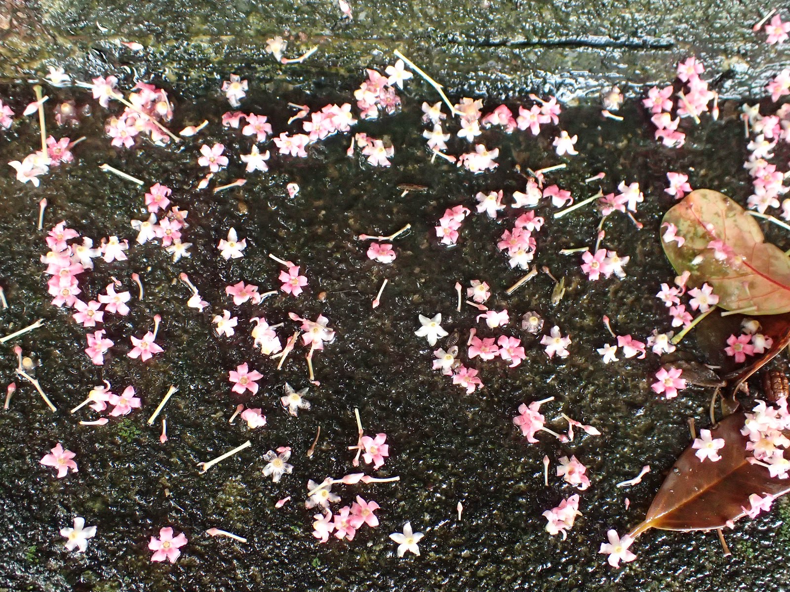 沿路看到的粉紅色小花就是酸藤掉下來的花