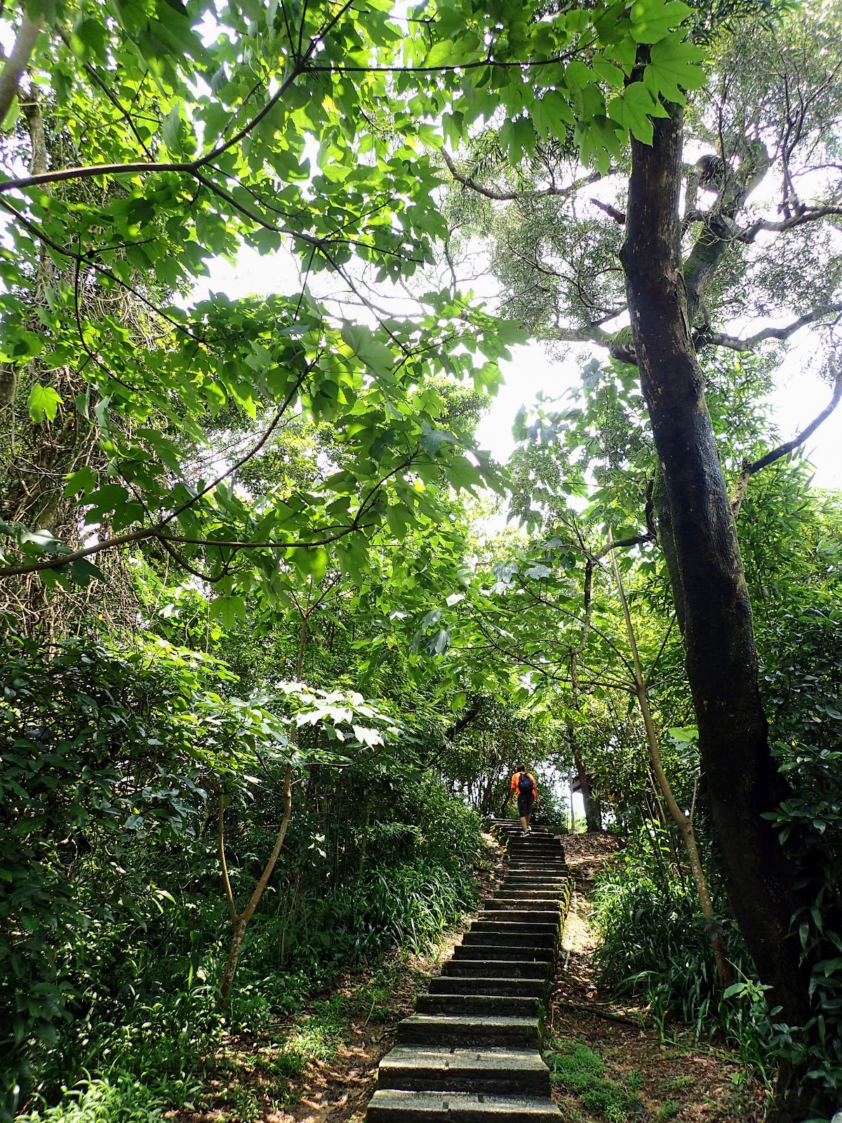 分岔路, 好奇旁邊階梯通往何處? 看青苔很深好像沒甚麼人走, 自己一人還是不要冒險, 繼續康莊大道