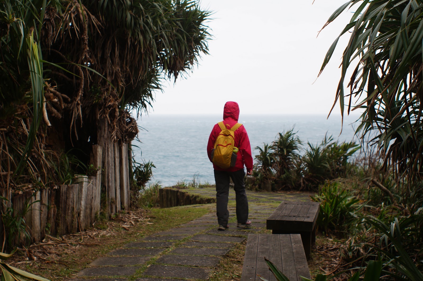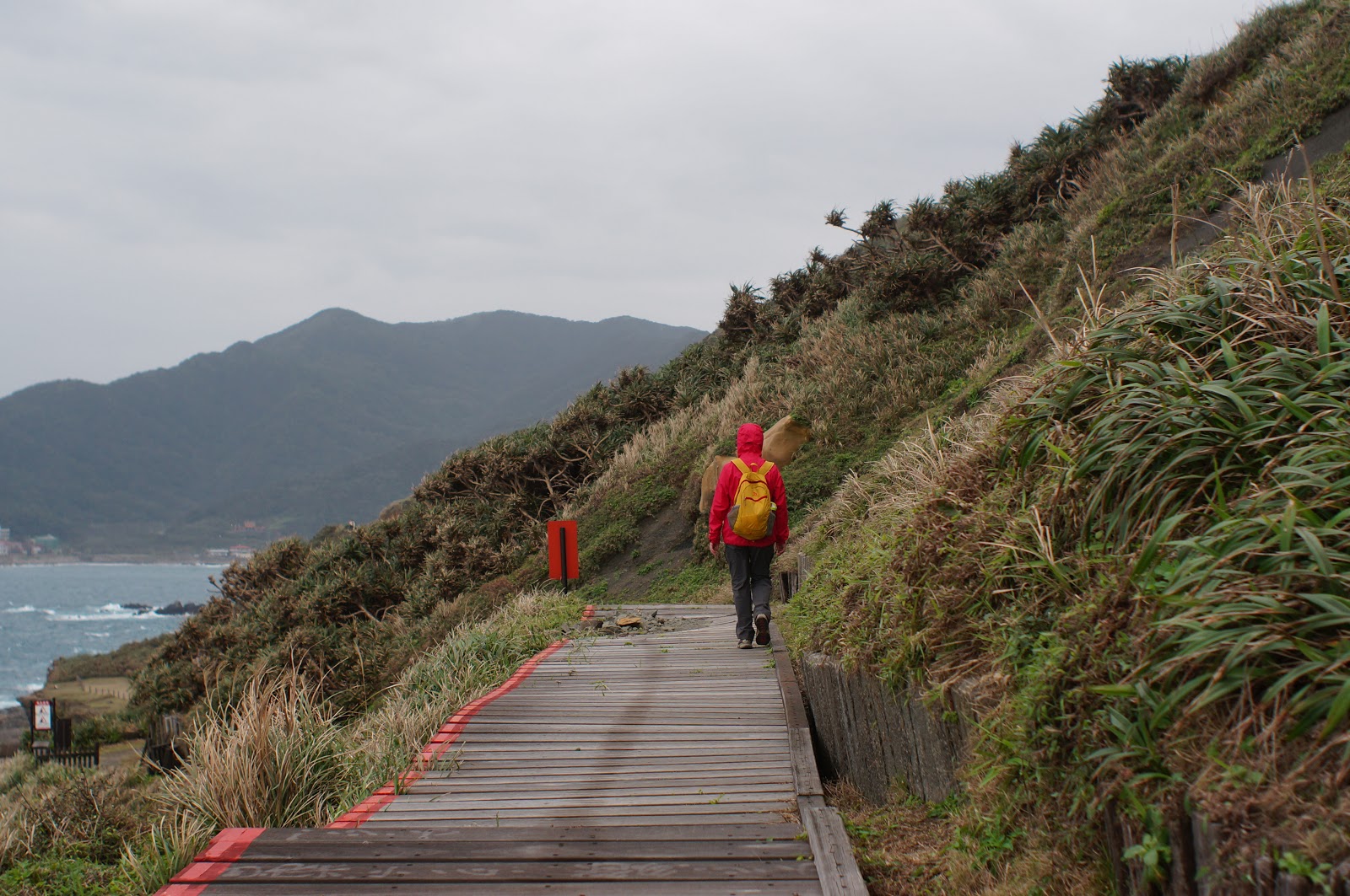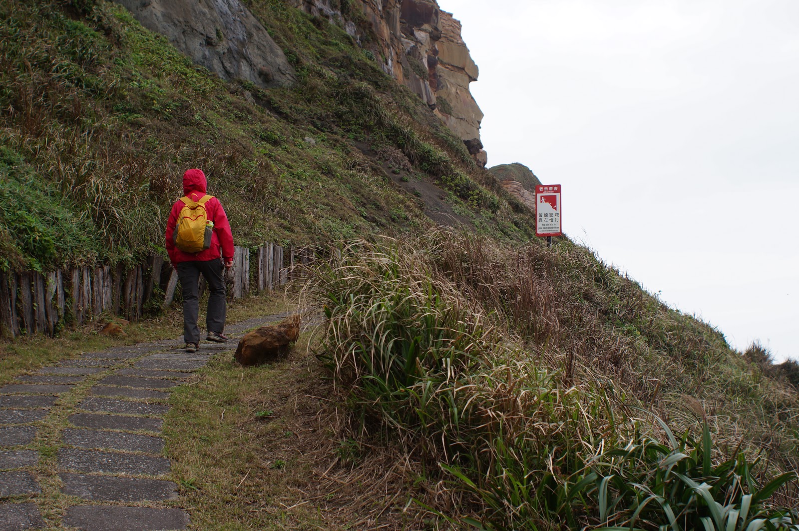 步道整理的很好, 一邊是山壁另一邊則是美麗的海天景色