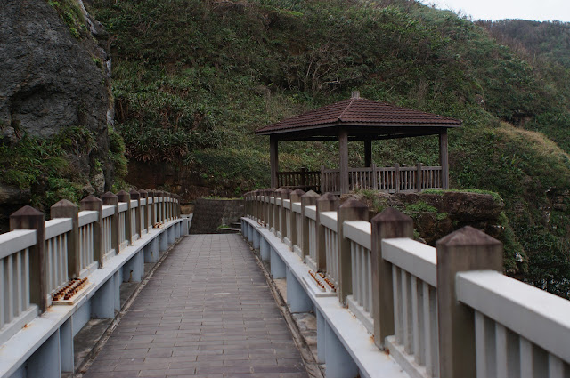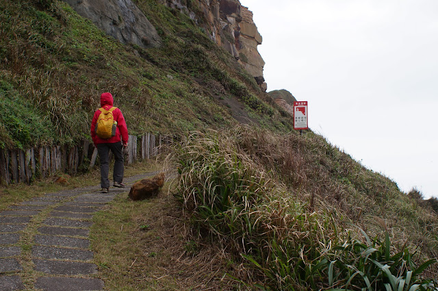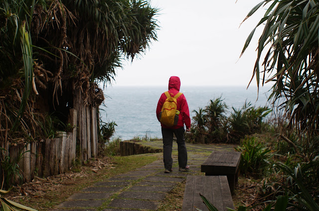 在另一觀景台處休息一下便往下走去鼻頭漁港, 步道上遇到一賣石花凍的小販, 25元買了一碗來吃, 冬天裡雖然是冰的但酸酸甜甜的真的不錯吃! 夏天生意肯定很好的