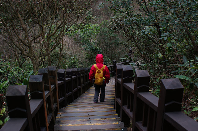 往回走時一樣注意山壁上風化的岩石, 回到剛的叉路便往上走