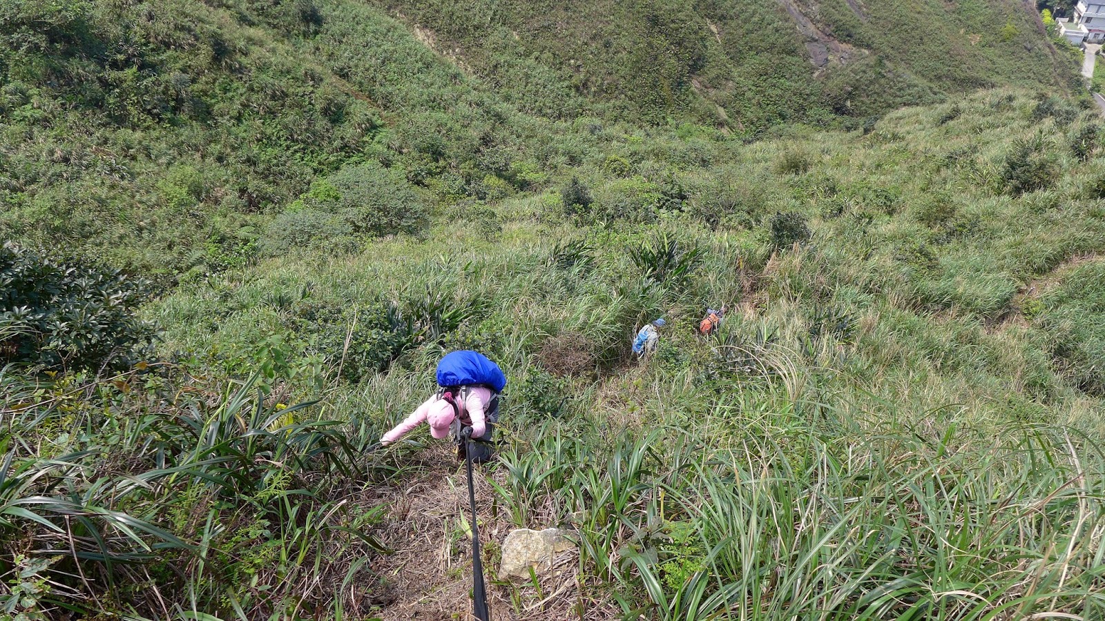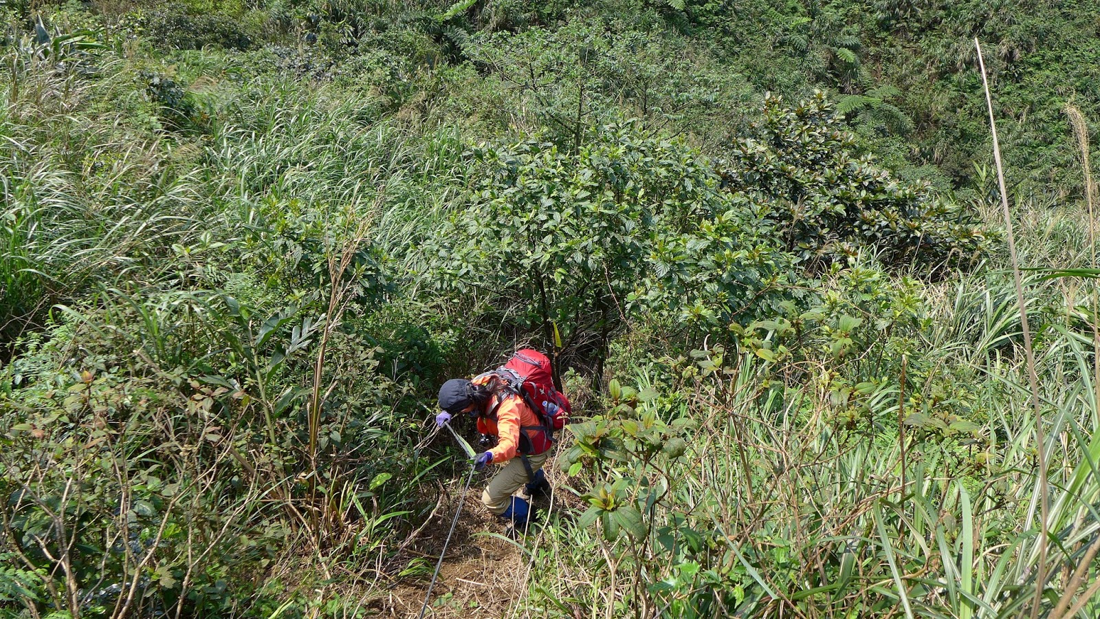 長仁稜算頗有難度的,每一座山頭下山都有一段近垂直陡下,很考驗技巧。