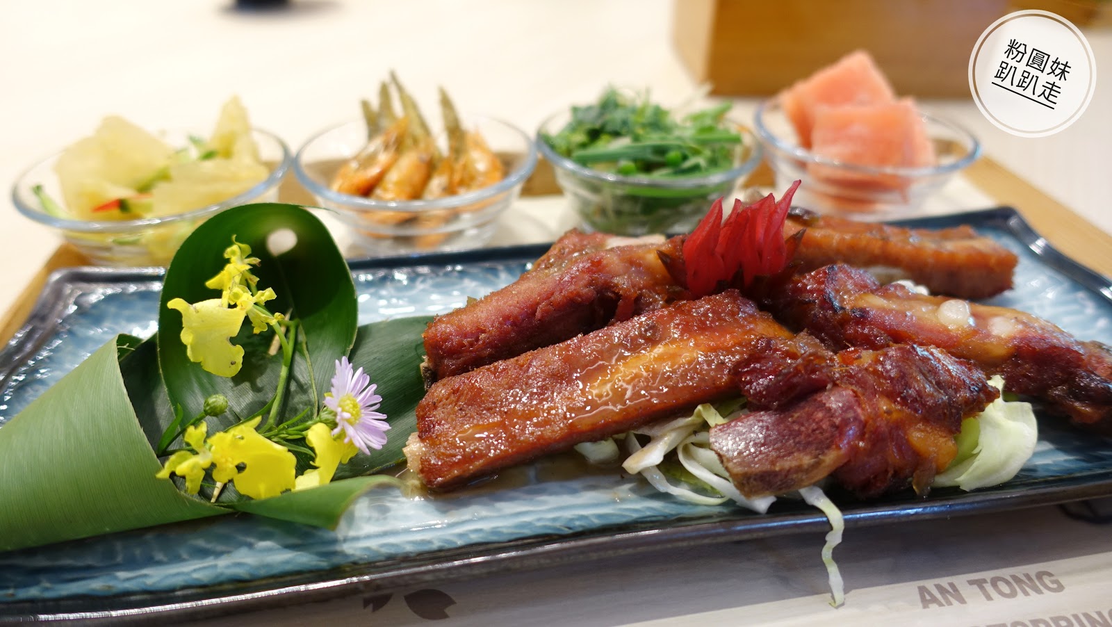參觀完百年歷史建築,就地在安通溫泉飯店用餐,最讓人期待的部落風味餐即將上場,餐盤送上桌,眾人不禁「哇」的一聲驚呼,讓人眼睛為之一亮,跟一般部落風味餐非常的不同,擺盤十分的精緻,有高級飯店的水準,仔細一看,都是使用在地食材做出來的料理,有蜜釀的洛神花佐豬肋條、透明薄片的山豬肉、現撈溪蝦小菜等,充滿原住民部落的特色,亦能跟得上時代潮流,用餐環境亦十分舒適。
